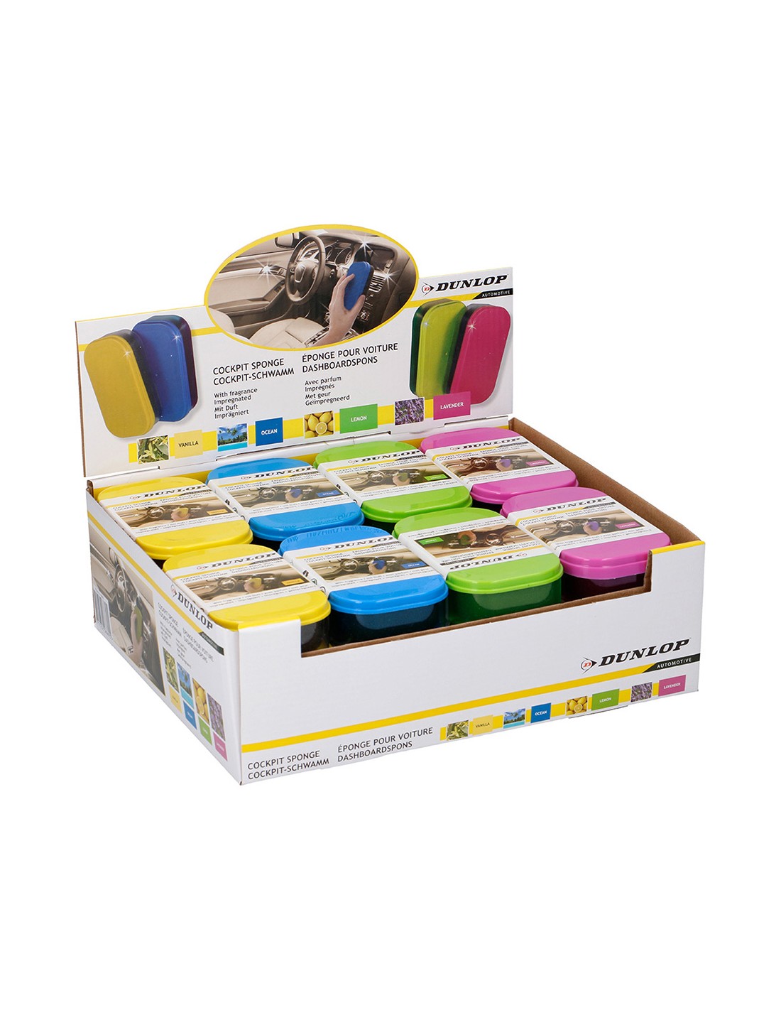 Esponja para salpicadero dunlop 12x3x7cm expositor 24 unid. colores / modelos surtidos