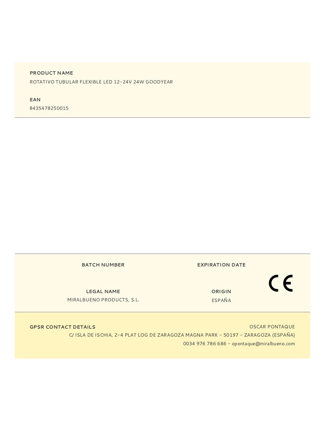 Rotativo tubular flexible led 12-24v 24w color ambar ip65 n° leds:8 velocidad: 125 rpm goodyear