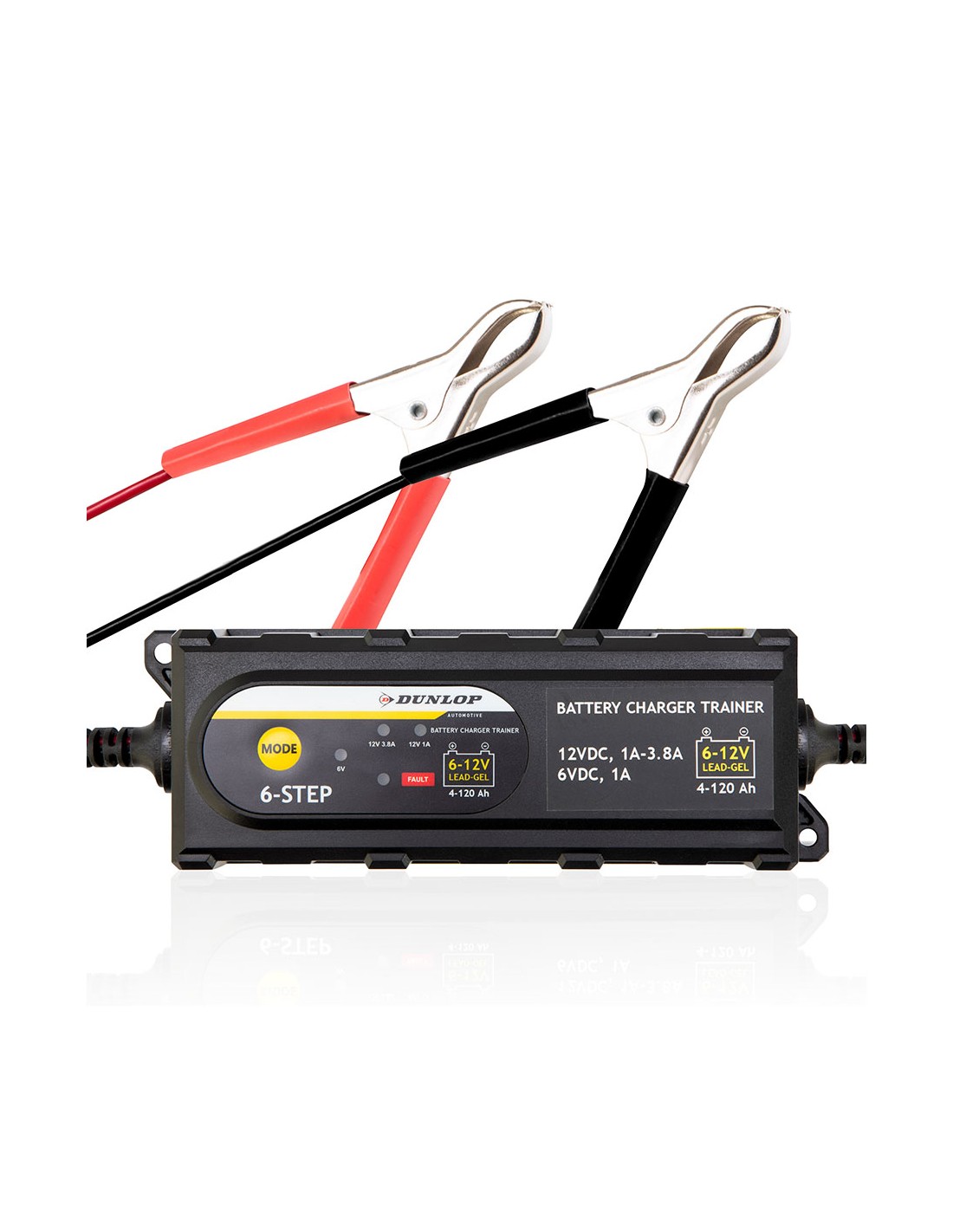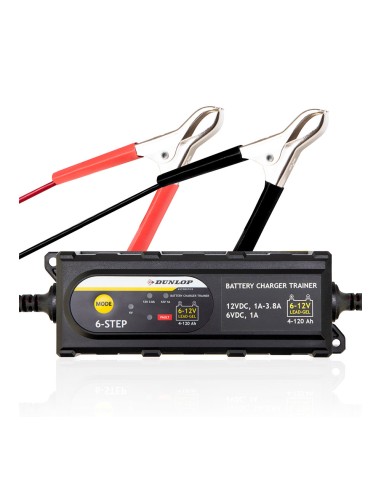 Cargador para batería de coche 6/12v dunlop. carga inteligente de 6 etapas para baterías de plomo y gel de 6/12v. protección conra chispas, cortocircuitos, sobrecalentamiento e inversión de polaridad. 4 - 120ah.
