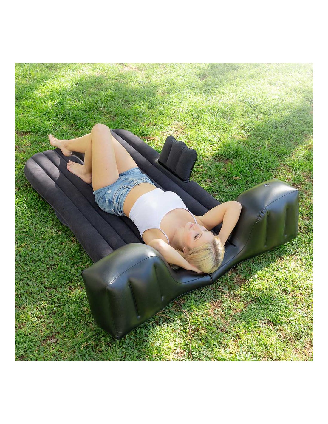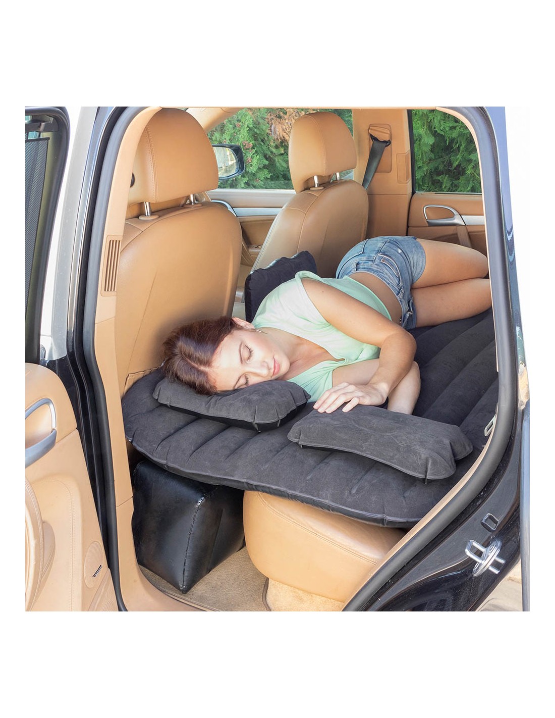 Colchón hinchable para coches roleep v0103712 innovagoods un versátil y confortable colchón hinchable para coches ideal para descansar cómodamente en el asiento trasero durante un largo viaje, en ferias y festivales, etc. también se puede usar fuera del coche, como cama o sofá en el jardín, en el camping, en la playa, en casa, etc. este colchón hinchable auxiliar es resistente, transpirable y su superficie superior es suave, de tacto agradable. se hincha y se deshincha fácilmente y se puede guardar y llevar sin problema a cualquier parte donde se necesite. dispone de un soporte de apoyo para el suelo del coche que sirve como respaldo cuando se utiliza en el exterior como sofá. incluye 2 almohadas hinchables, kit de reparación, bolsa de transporte, inflador automático con adaptador para coche (12v) y 3 boquillas intercambiables para hincharlo adecuadamente. se puede usar en interiores y exteriores y es apto para todo tipo de coches. medidas: 132,5x72x40cm (ancho/fondo/alto)