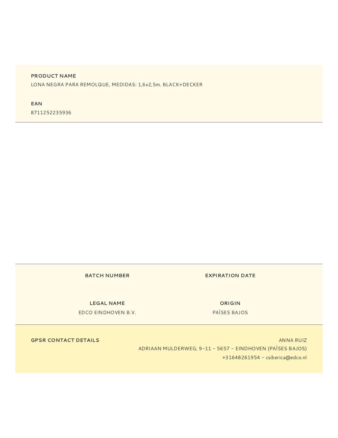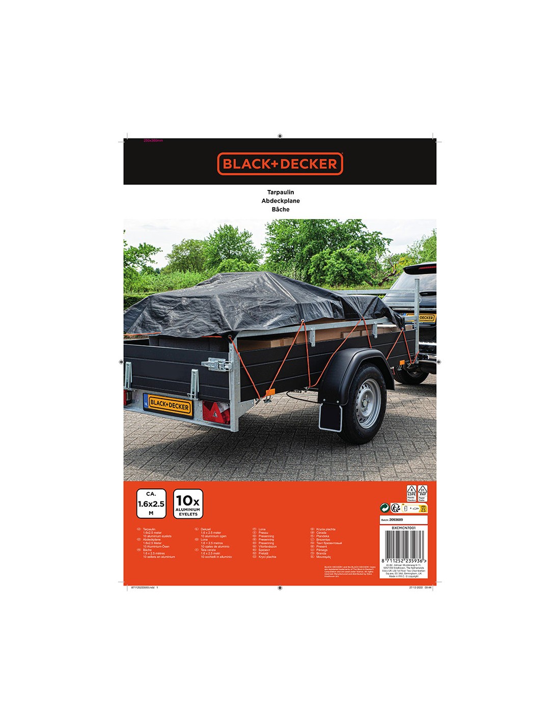 Lona negra para remolque, medidas: 1,6x2,5m, con 10 ojales de aluminio. black+decker