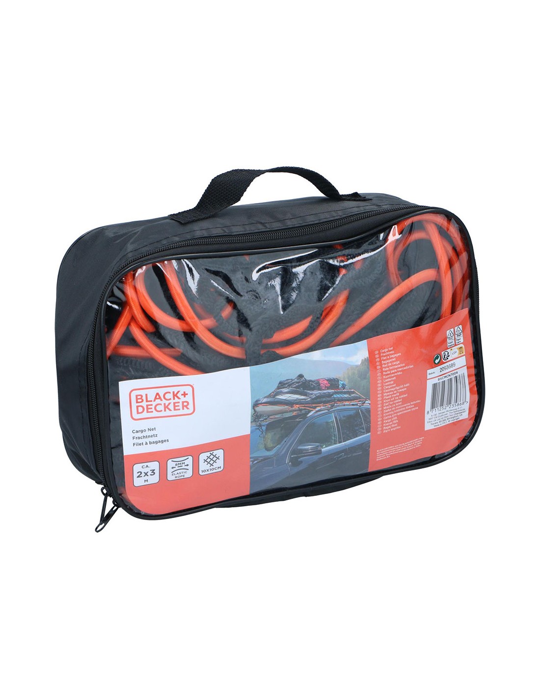 Red de carga elastica, medida: 2x3m, mallado 10x10cm. incluye cuerda elastica de 8mm. black+decker