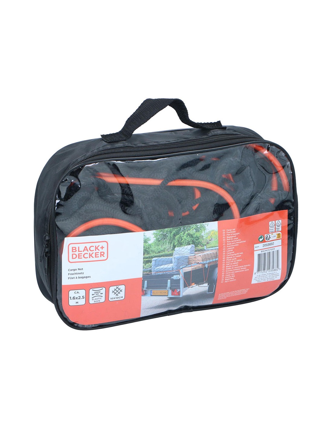 Red de carga elastica, medida: 1,6x2,5m, mallado 10x10cm. incluye cuerda elastica de 8mm. black+decker
