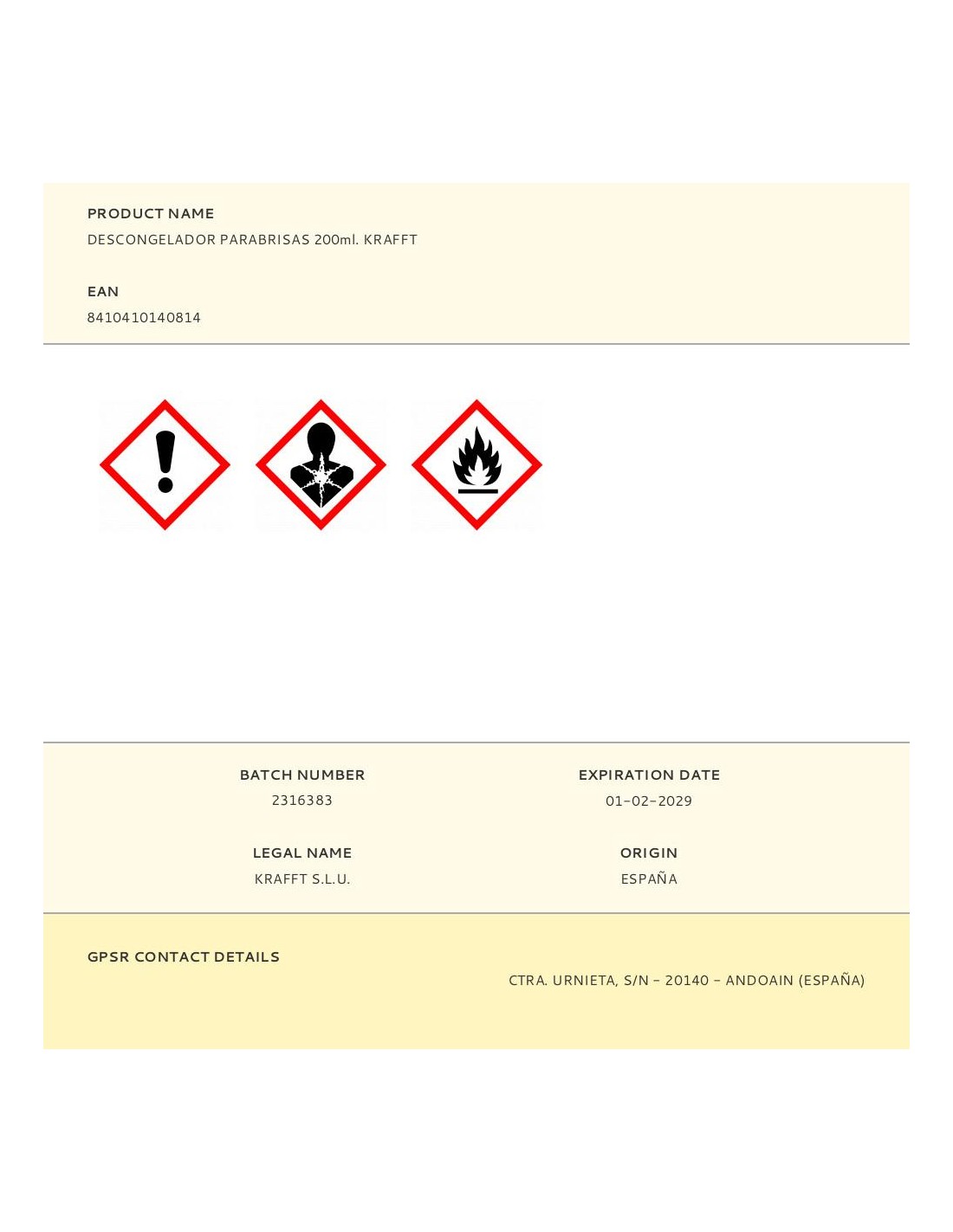 Descongelador parabrisas 200ml, elimina rápidamente el hielo y escarcha de parabrisas, ventanillas, cerraduras, faros, etc. krafft