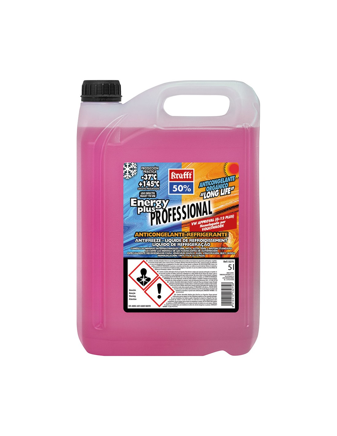 Anticongelante energy plus 50% 5l, normas que cumple: une 26.361.88 , inta 157413, astm d 3306, astm d4656, jis k 2234 llc, sae j-1034, astm d 4985, astm d 5345, federal standard o-a-548d, jaso m325 llc, afnor nf r 15601, nato s-759, british standard 6580, sae j-814. especificaciones oem que supera (sfu): vw tl 774 f (g-12+), pvi/rnur 41-01-001 tipo d, ford wss-m97b44-m, daf mat 74002, volvo 260, psa b71 5110, mercedes 325.3, man 324 tipo snf, scania tb-1451, mtu mtl 5048, gm 6277m. krafft