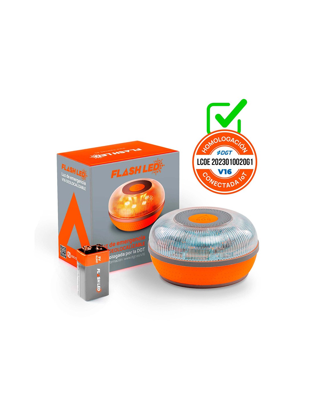 Flashled sos es la luz de emergencia v16 para señalización de accidentes o averías en carretera. conectada con telefónica y con la plataforma dgt 3.0, comparte tu ubicación exacta y en tiempo real, de forma completamente anónima, con el resto de los usuarios a través de navegadores, apps de movilidad y paneles de señalización variables. compatible con la aplicación sos alert, que permite avisar de la incidencia a tus contactos de emergencia o contactar con el servicio de asistencia o la aseguradora sin necesidad de llamadas. incluye una tarjeta sim con datos incluidos hasta 2038. este dispositivo será obligatorio el 1 de enero de 2026. funciona con pila 9 v ( incluida ). dimensiones: 8,6 x 8,6 x 4,5 cm