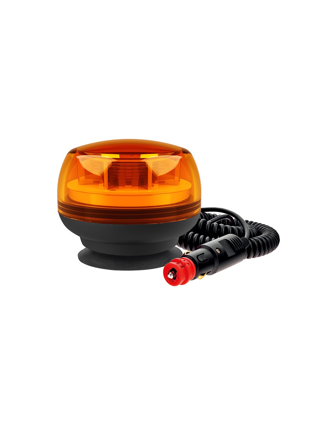 Mini faro rotativo led base magnética 12 v-24 v, ip65, n. leds 8. temperatura que soporta -30 / 50 c. conexión a mechero. material: abs. material de la lente: pc. color ámbar. medidas 100 x 100 x 110 mm