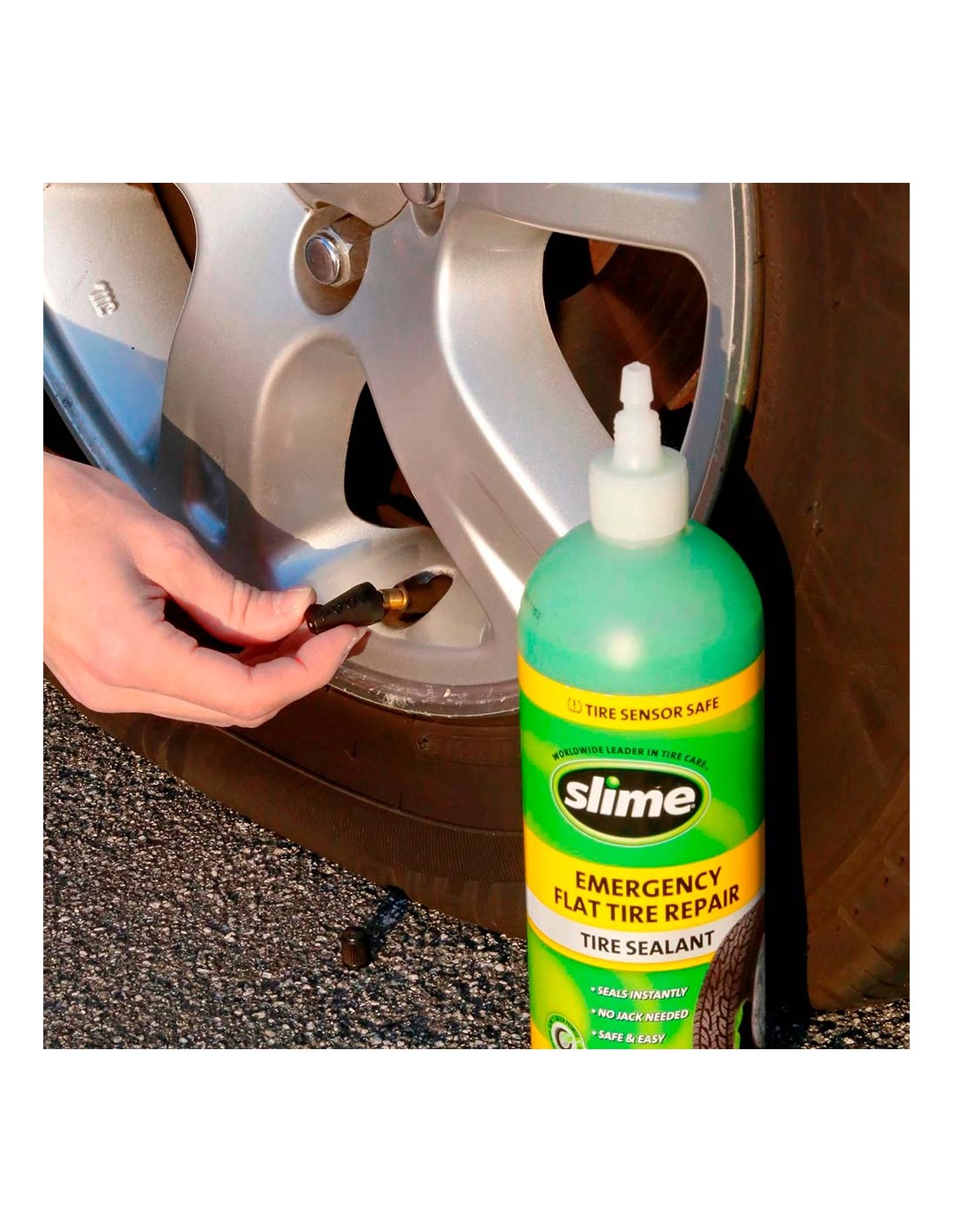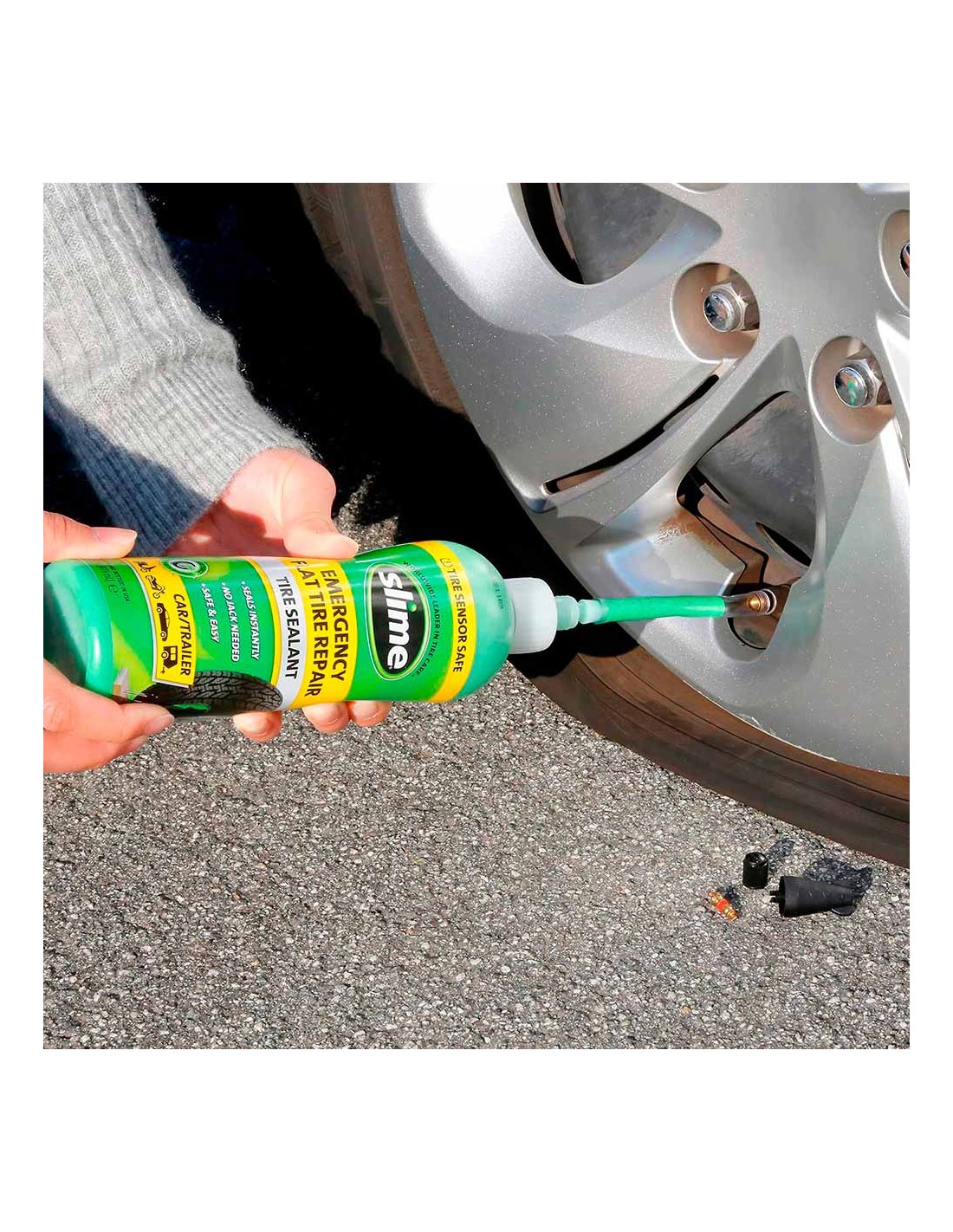 Producto sellador para la reparación de pinchazos de forma instantánea y sin desmontaje. tapa pinchazos de hasta 6 mm usando la tecnología patentada de fibro-seal tm. válido para temperaturas extremas de -37 c a 82 c. fácil de limpiar, se elimina con agua. contiene 473 ml