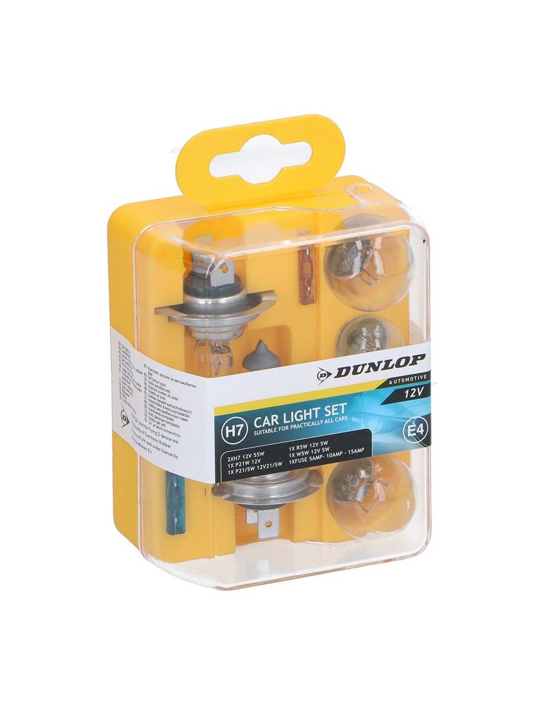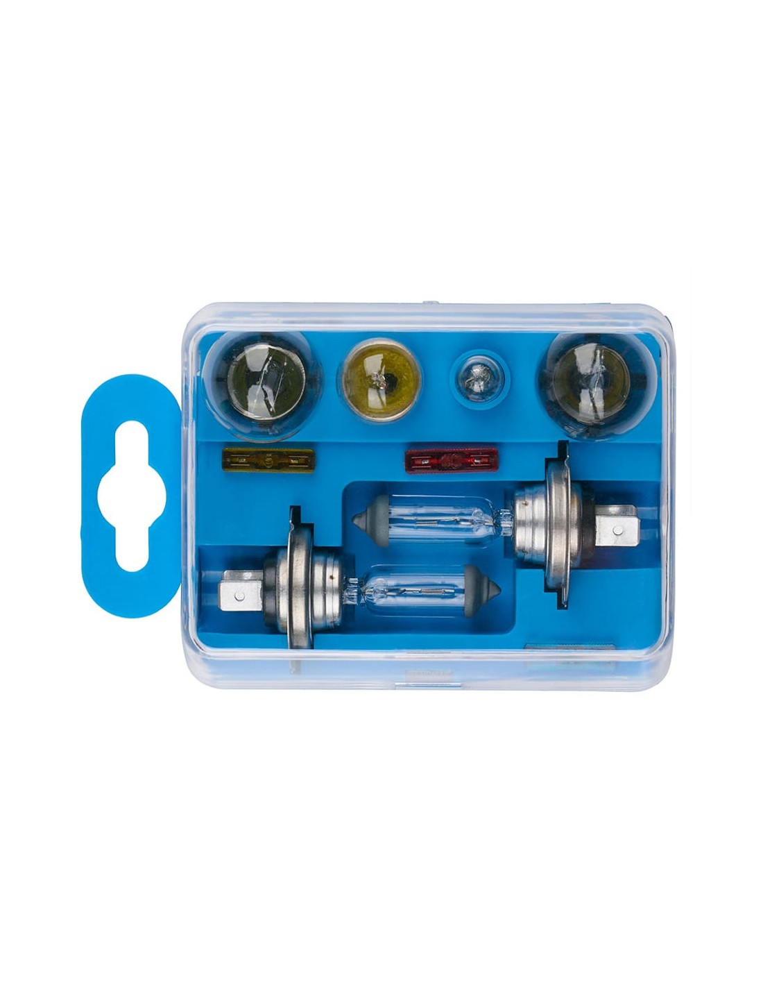 Set luces coche h7, 12 v, 9 piezas. contiene: 2 x h7 12 v 55 w, 1 x p21w 12 v, 1 x p21/5w 12v, 1 x r5w 12 v 5 w, 1 x w5w 12 v 5 w y 1 fusible 5 amp - 10 amp - 15 amp