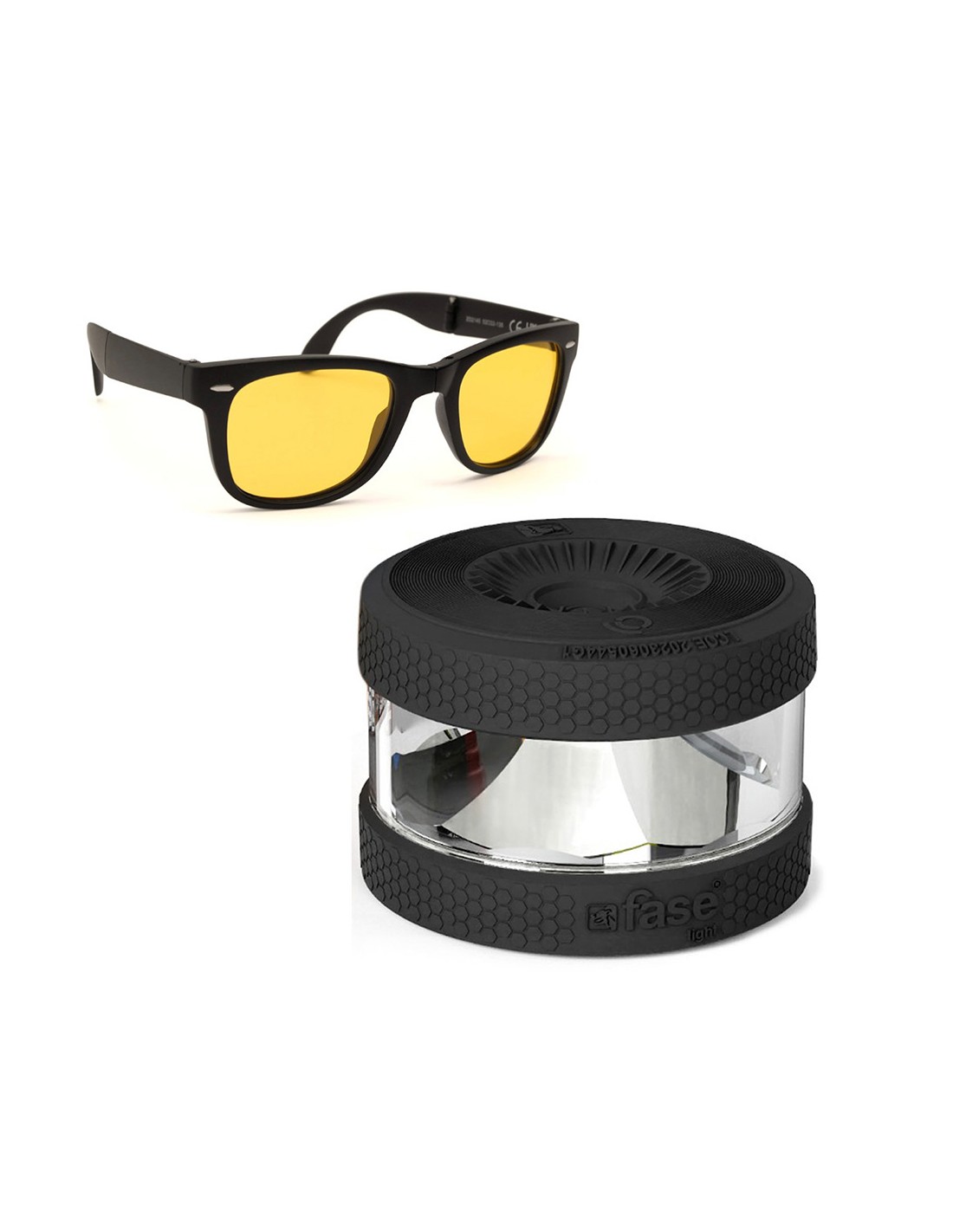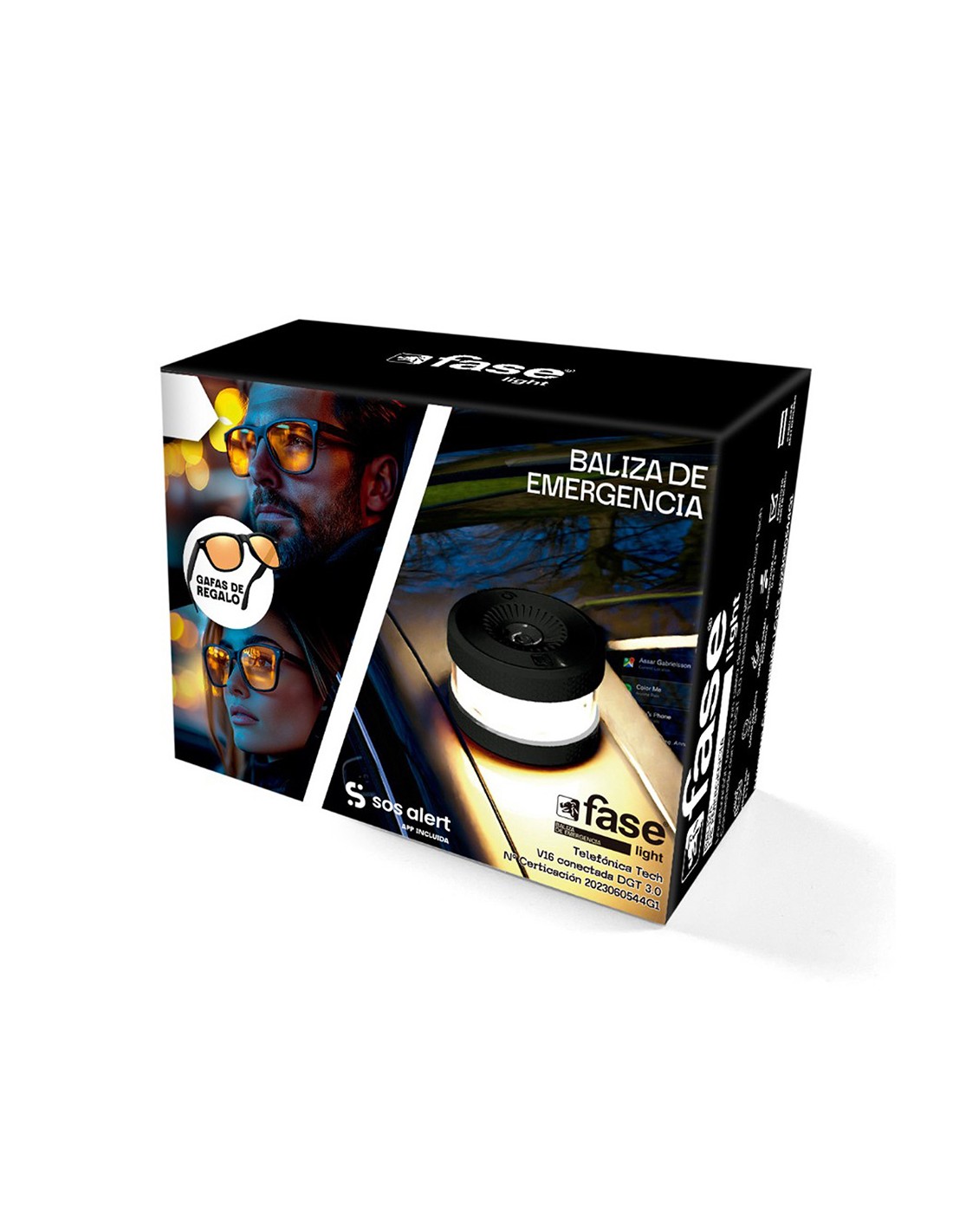 Baliza v16 de emergencia homologada conectada geolocalizable con dgt 3.0 fase light + gafas de noche de regalo iot dgt 3.0 4 x aaa incluidas sim integrada con datos hasta 2038 32% material reciclado carcasa engomada ip54 frecuencia homologada r65, 75 candelas efectivas a 1 km 360° certificado: lcoe 2025080734g1 gafas lente amarilla pc con ar ambos lados, en iso 12312-1, funda protectora, gamuza y manual 13,5 x 8 x 5 cm