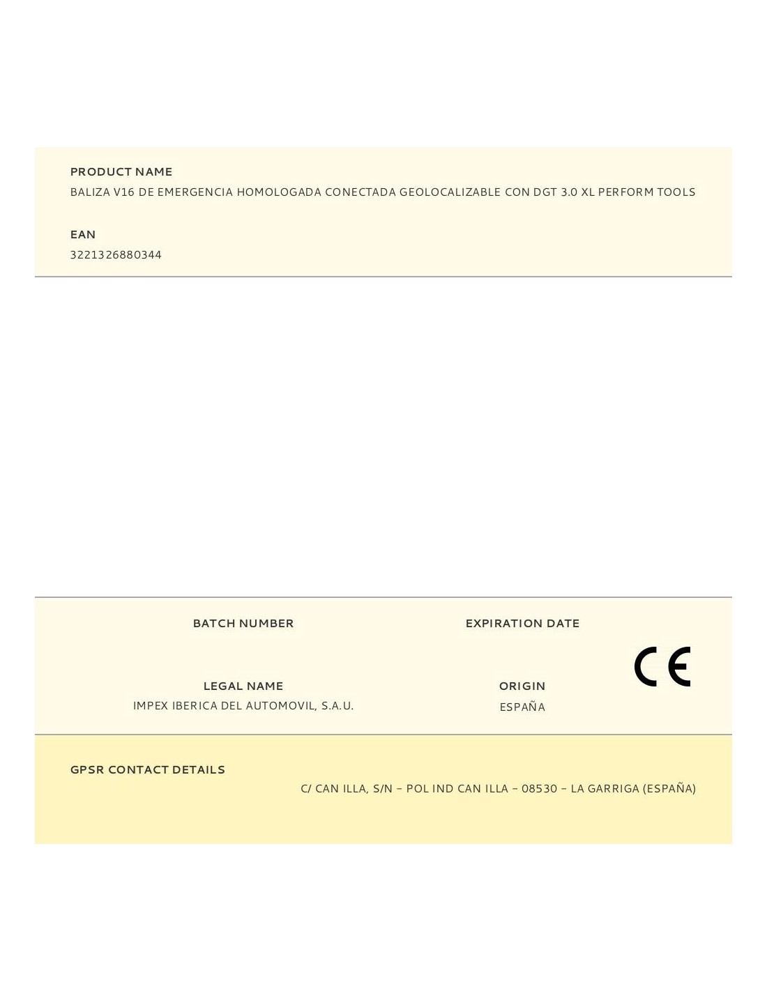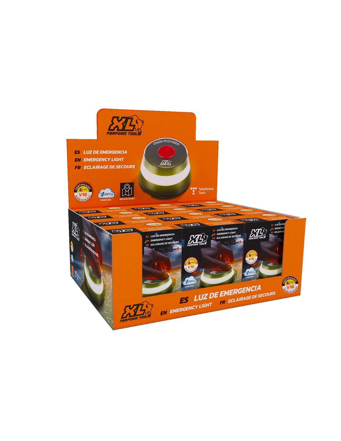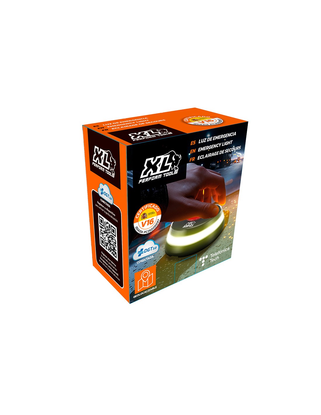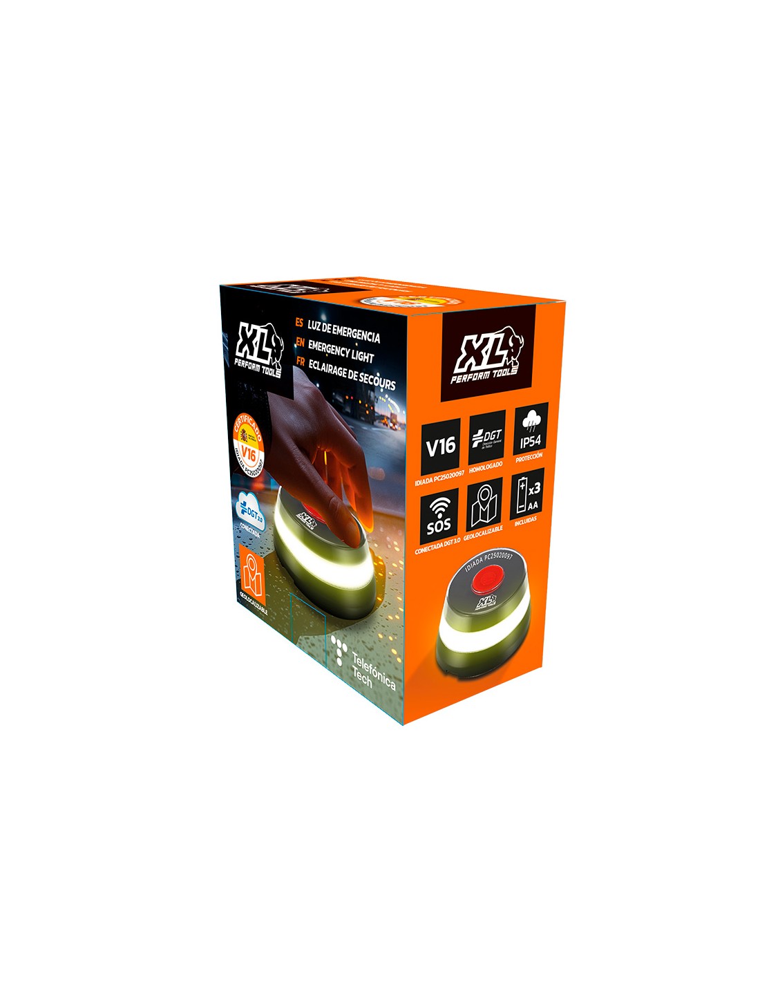 Baliza v16 de emergencia homologada conectada geolocalizable con dgt 3.0 xl perform tools sim válida hasta 01/01/2038 ip54, visible a 1 km 360° -10 y 50°c sujeción magnética máximo dos horas de autonomía, funciona con 3xaa pilas incluidas ø116 x 96 mm