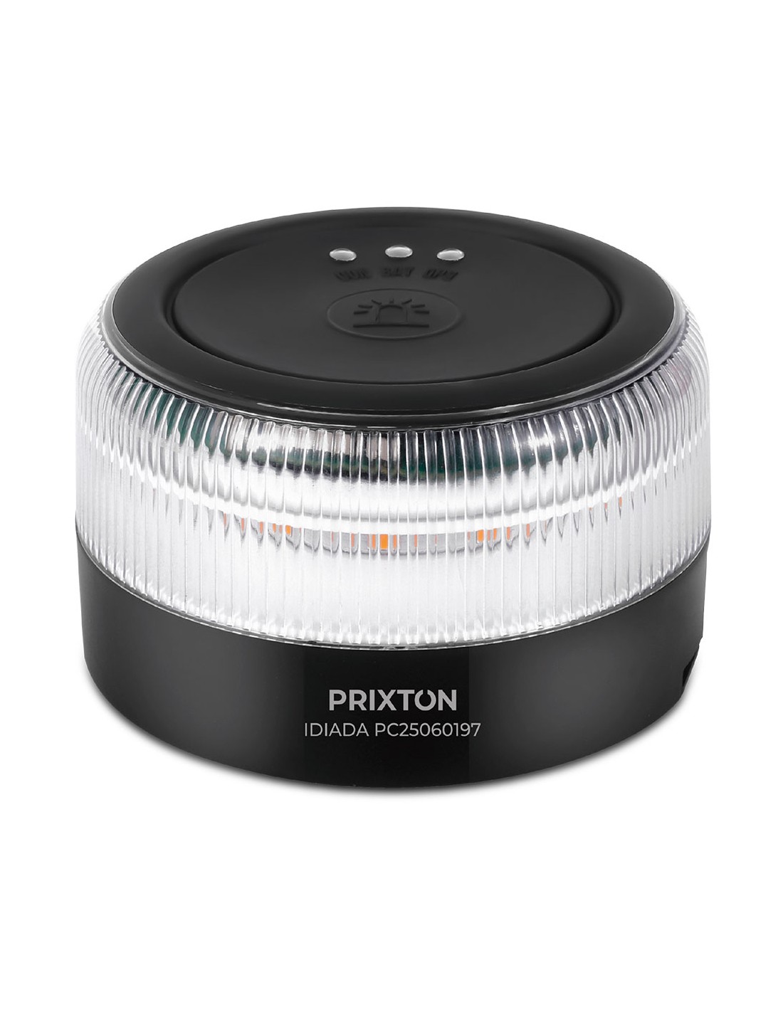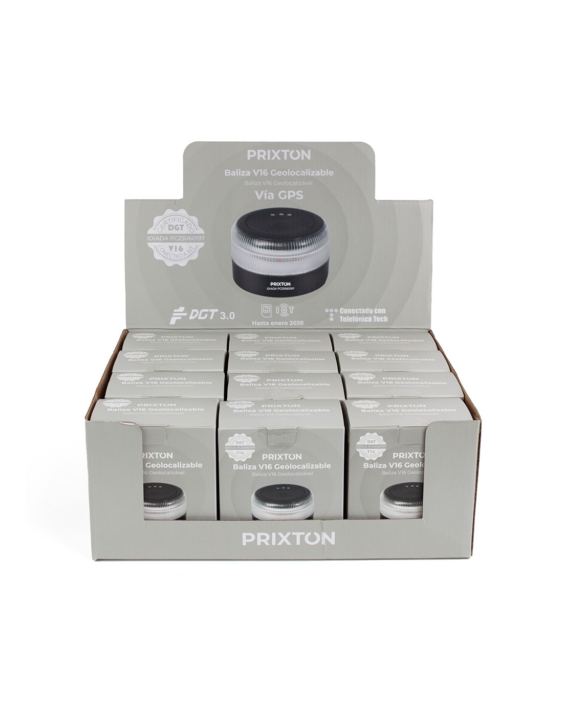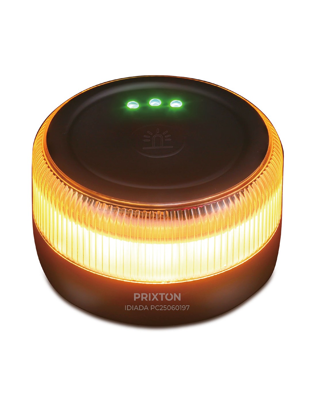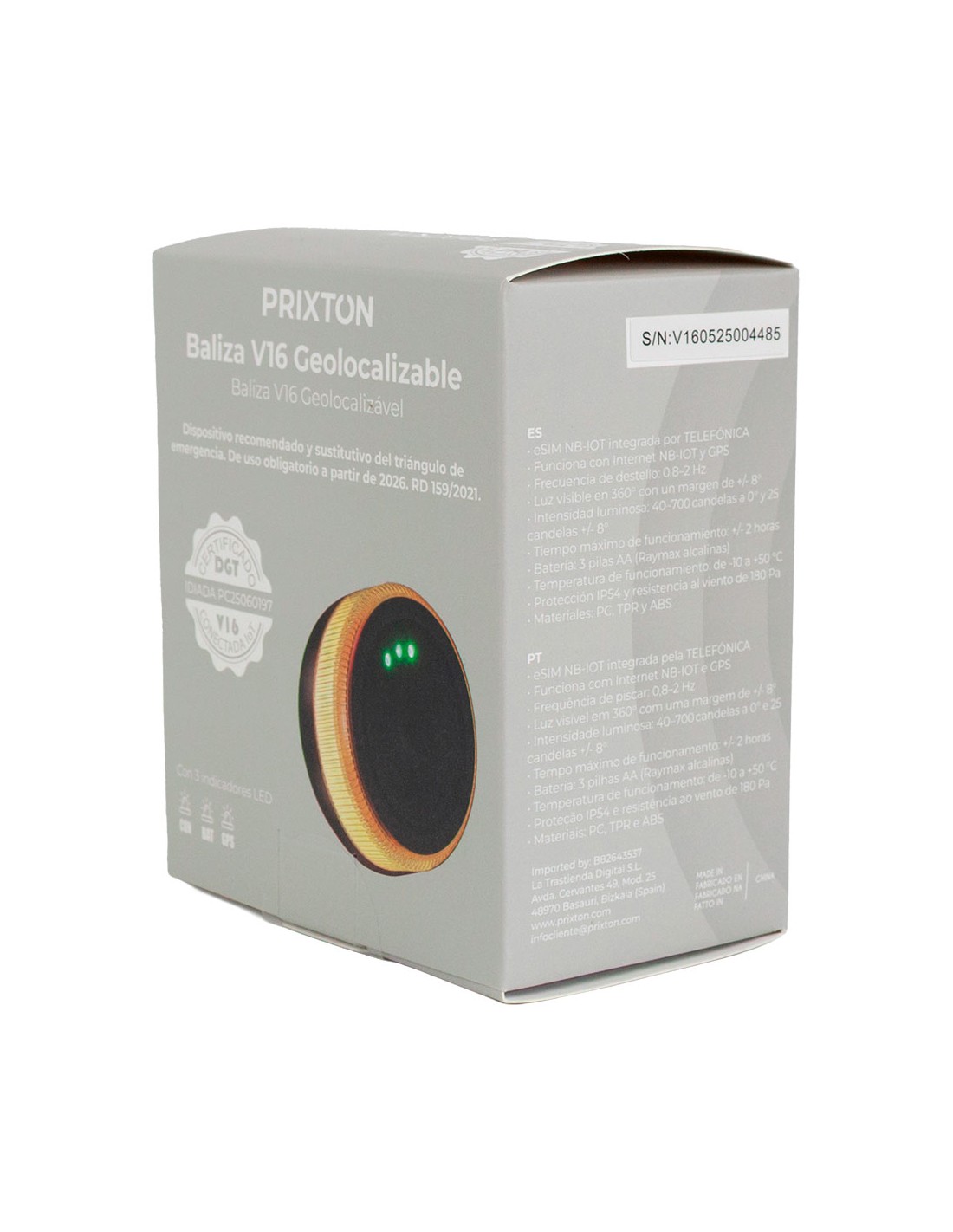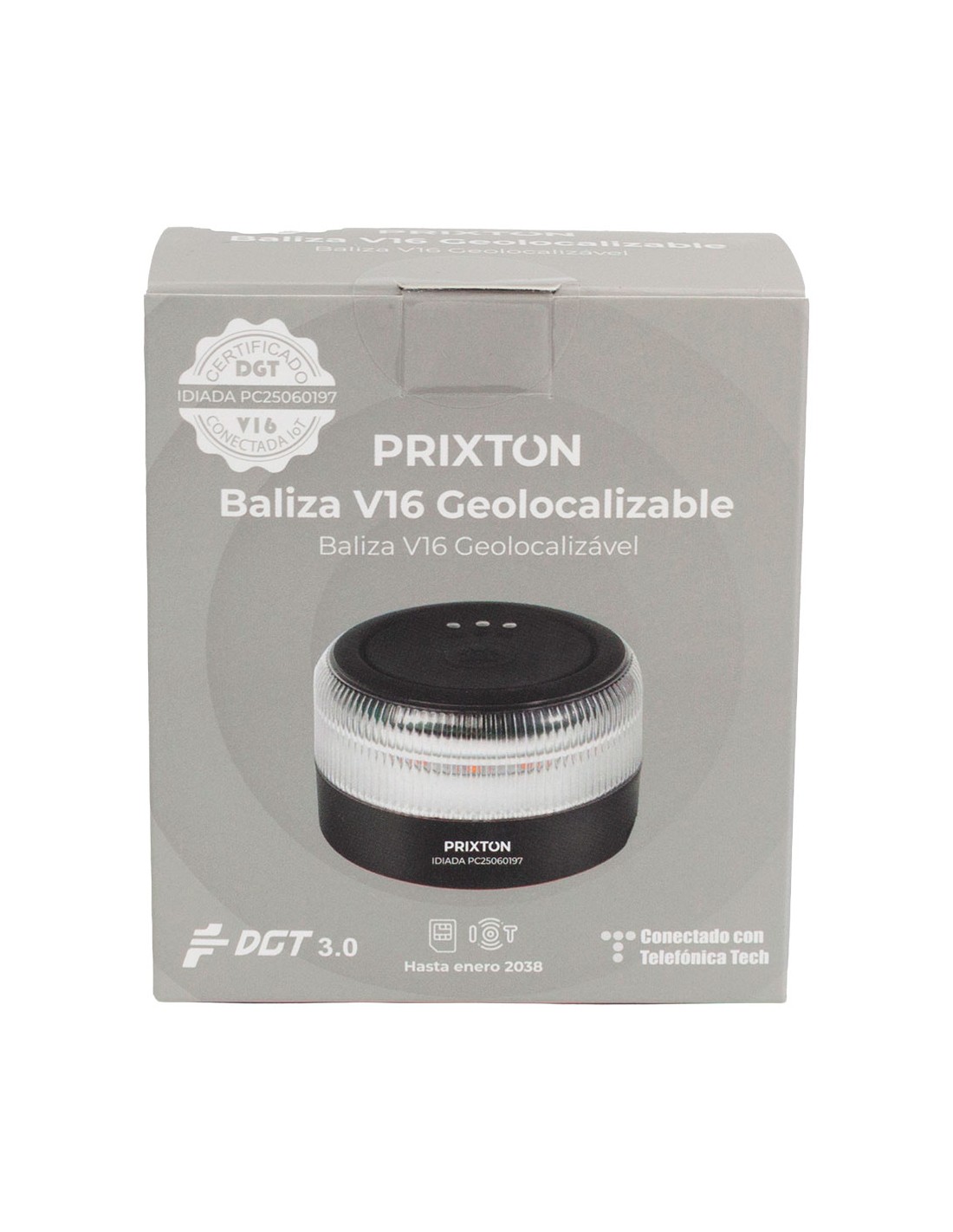 Baliza v16 de emergencia homologada conectada geolocalizable con dgt 3.0 prixton sim válida hasta 01/01/2038 ip54, visible a 1 km 360° -10 y 50°c sujeción magnética máximo seis horas de autonomía, funciona 3xaa pilas incluidas