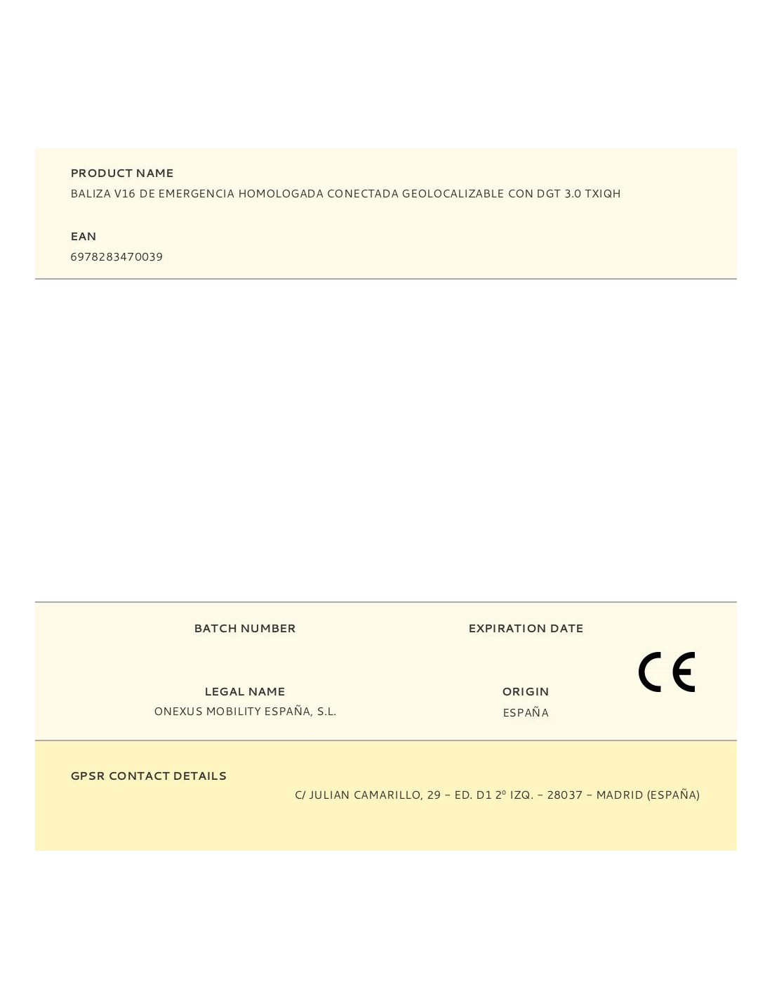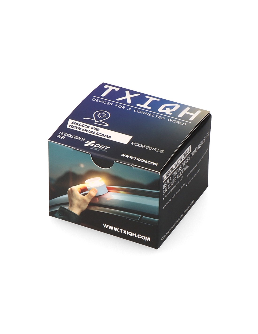 Baliza v16 de emergencia homologada conectada geolocalizable con dgt 3.0 txiqh sim válida hasta 31/12/2038 ip54, visible a 1 km 360° -10 y 50°c sujeción magnética dos horas de autonomía, funciona con 1 pila de 9 v tipo 6lr61 incluida, indicador carga batería