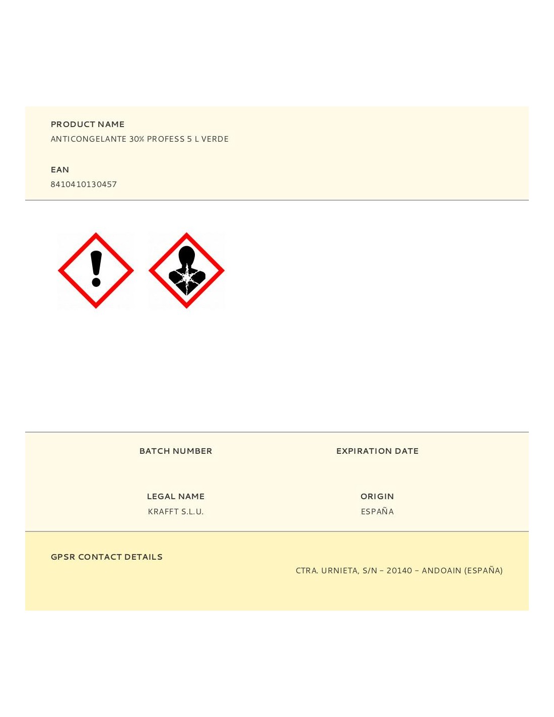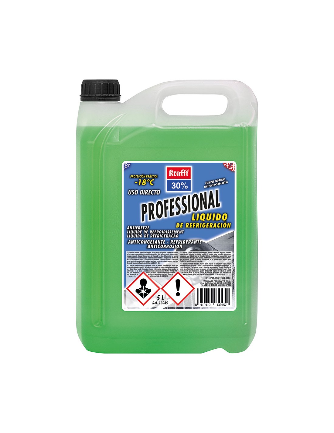 Anticongelante 30%, professional, verde, 5 l, normas que cumple: une 26.361.88 , astm d 3306, astm d 4985, sae j-1034, british standard 6580, federal standard o-a-548d. inta 157413. especificaciones oem que supera (sfu): opel ql 130 100, vw tl-774-c (g-11), man 324 tipo nf, mercedes benz 325.0, mtu mtl 5048, scania tb 1451, gm b040 0240
