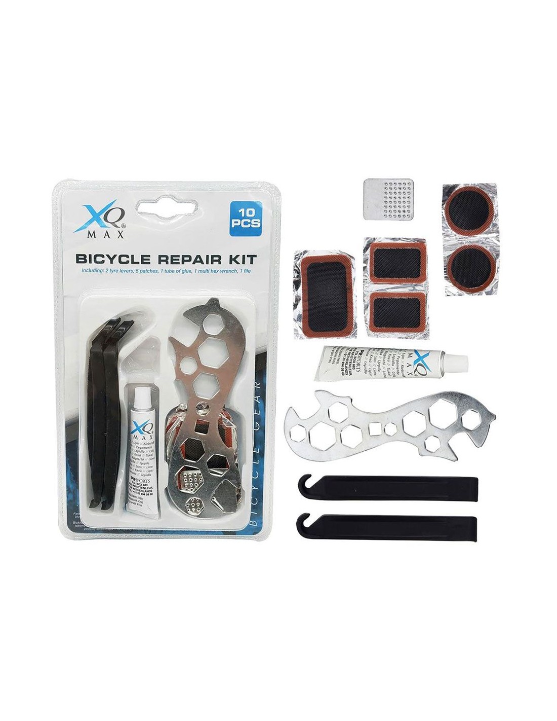Kit básico reparación para ruedas de bicicleta, 10 piezas. incluye 2 palancas, 5 parches, 1 tubo de pegamento, 1 llave multi-hexagonal, 1 lima