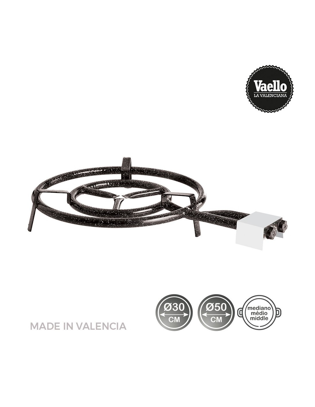 SET PAELLERA PULIDA 38CM CON TRIPODE Y QUEMADOR GAS 300MM