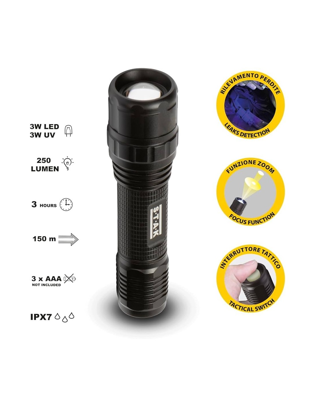 LUMINARIA 3 LED COLOR NEGROPRESIONA Y ENCIENDE DOT IT