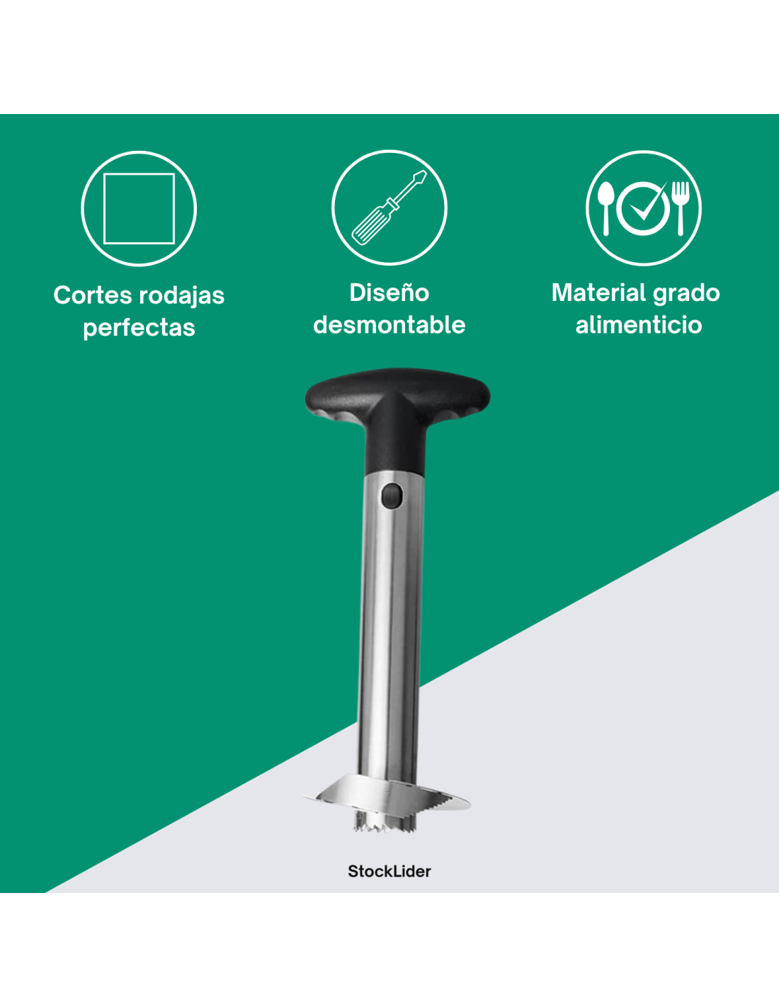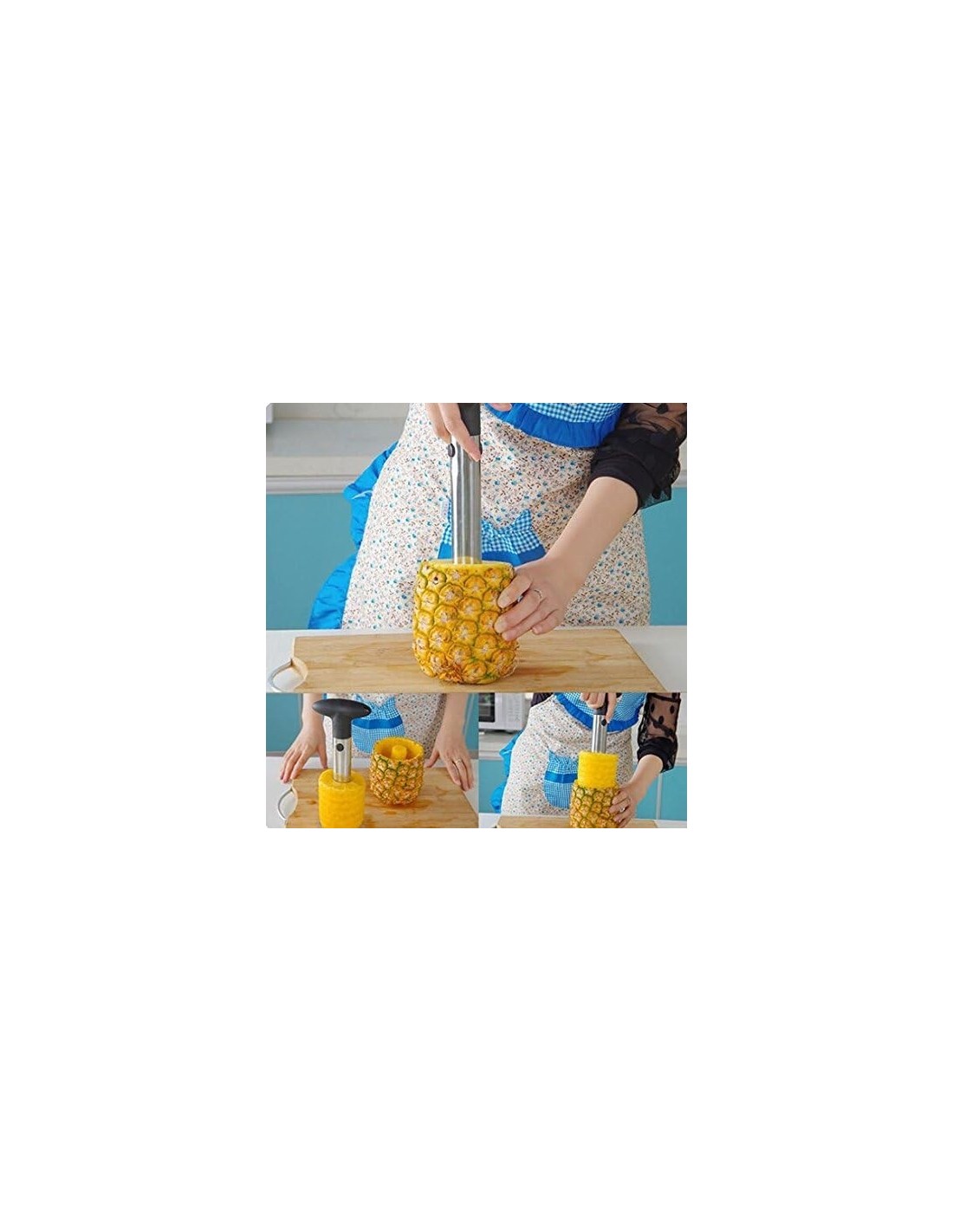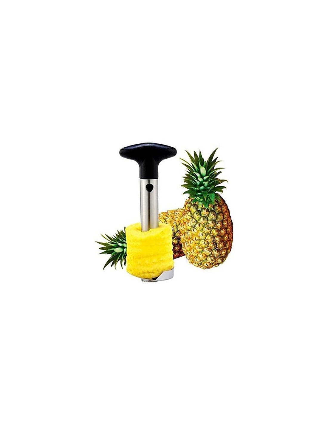 El descorazonador de piña o cortadora de piñas presenta un mango ergonómico, antideslizante y de fácil sujeción, lo que permite pelar, descorazonar y cortar una piña fresca y natural en tan sólo segundos. Siendo un quita huesos y pela piñas bastante eficaz.