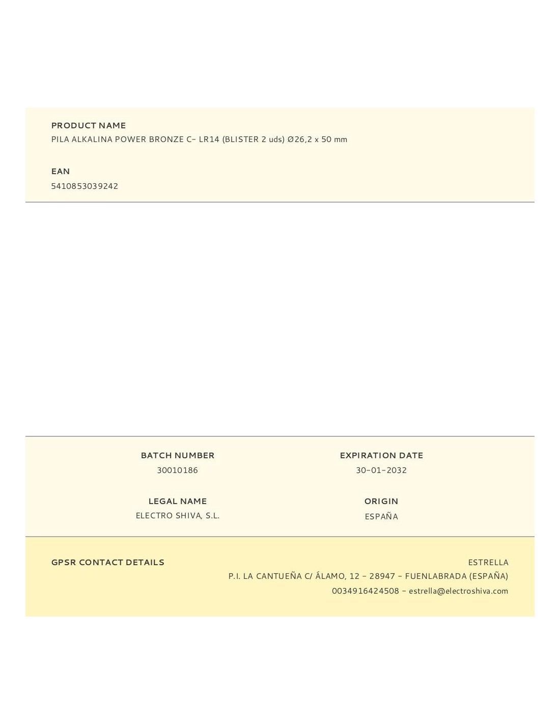 Pila alkalina panasonic bronze c - lr14 1,5v (blister 2 unid.) ø26,2x50mm (diámetro/alto)