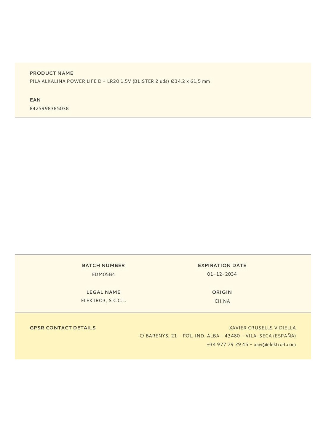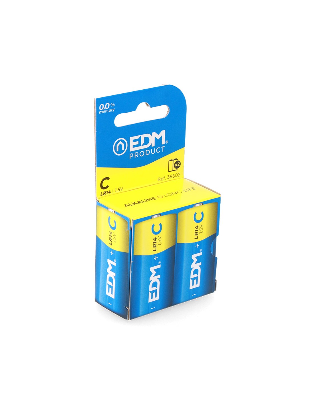 Pila edm alkalina long life d - lr20 1,5v (blister 2 unid.) ø34,2x61,5mm (diámetro/alto)
