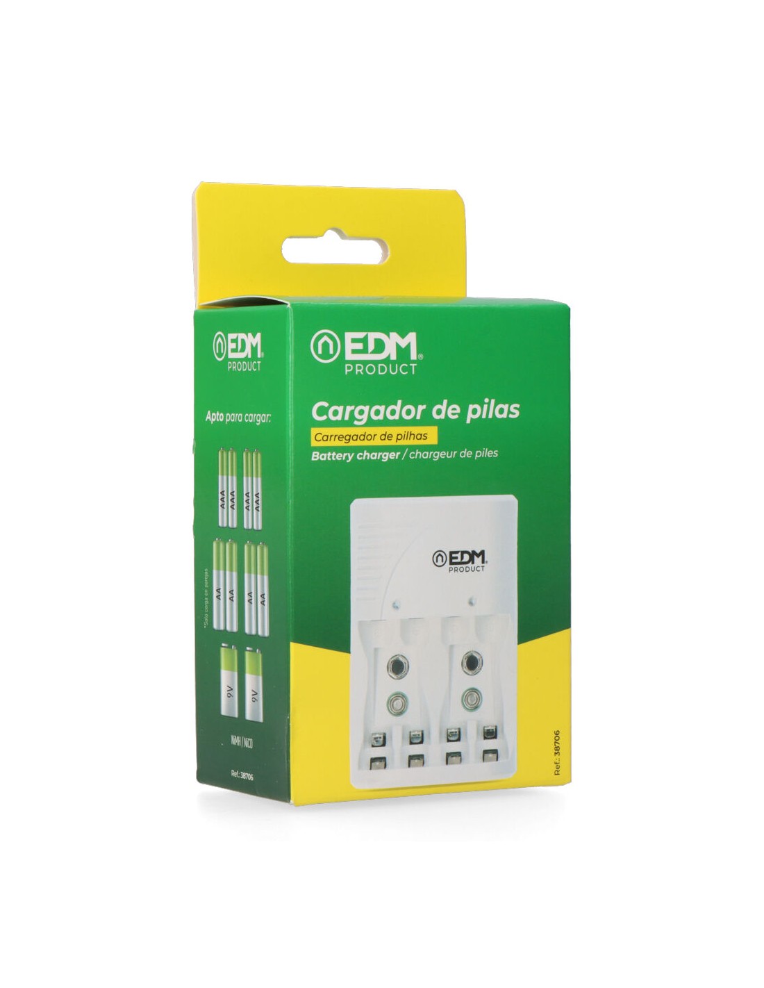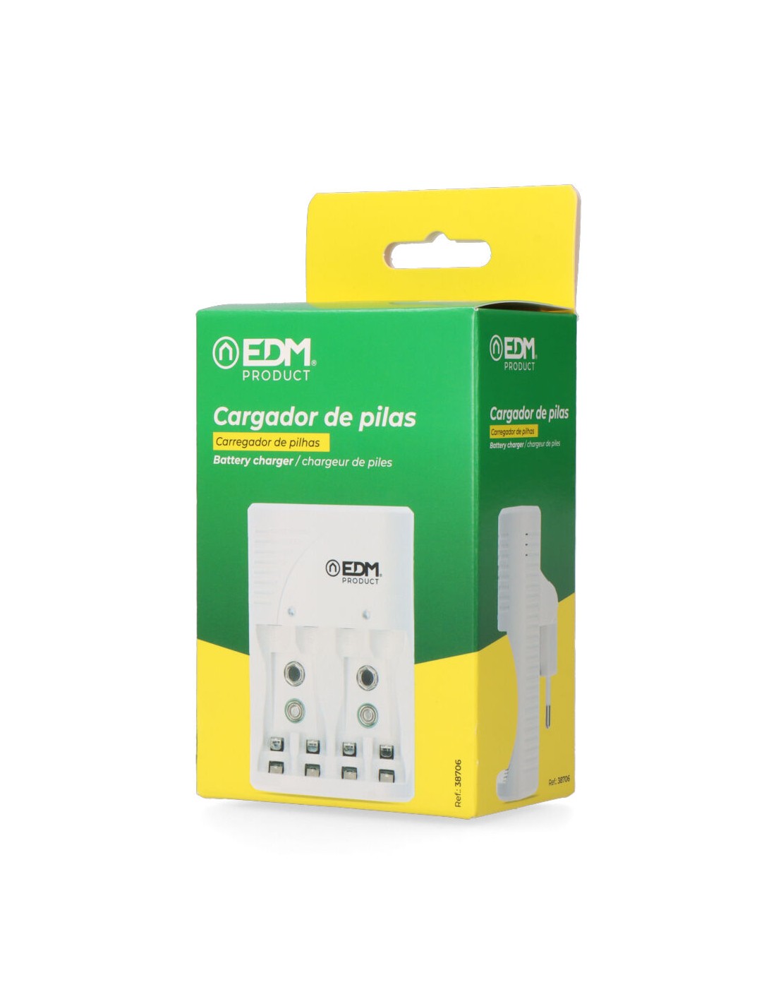 Cargador de pilas para: 4 pilas aa - aaa - 9v 220-240v 50hz con enchufe tiempo de carga 12h aprox. (sin pilas)