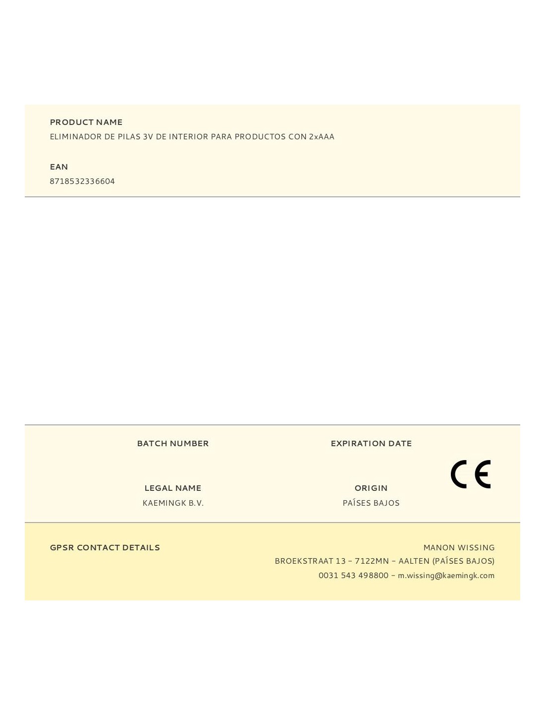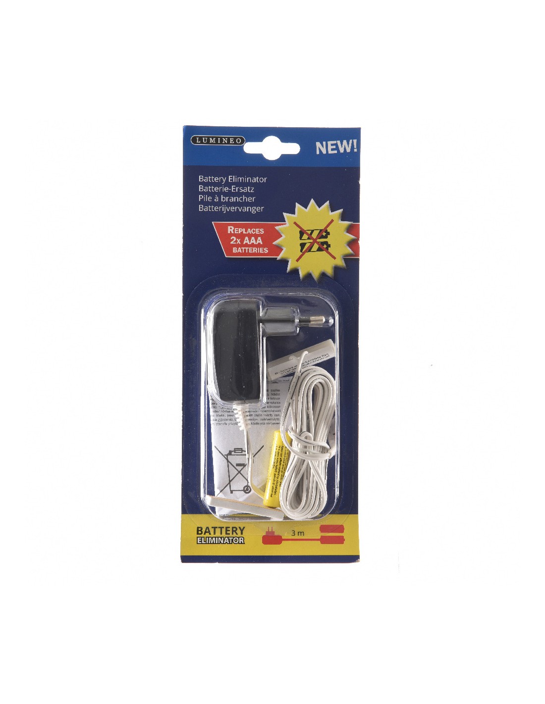 Eliminador de pilas 3v para interior de productos con 2xaaa cable de alimentacion de 3m