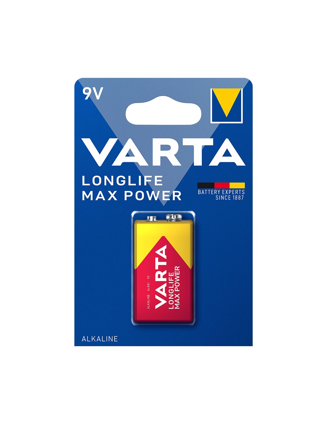 Pila varta long life max power 9v - 6lr61 (blister 1 unid.) 26,5x17,5x48,5mm (ancho/fondo/alto)