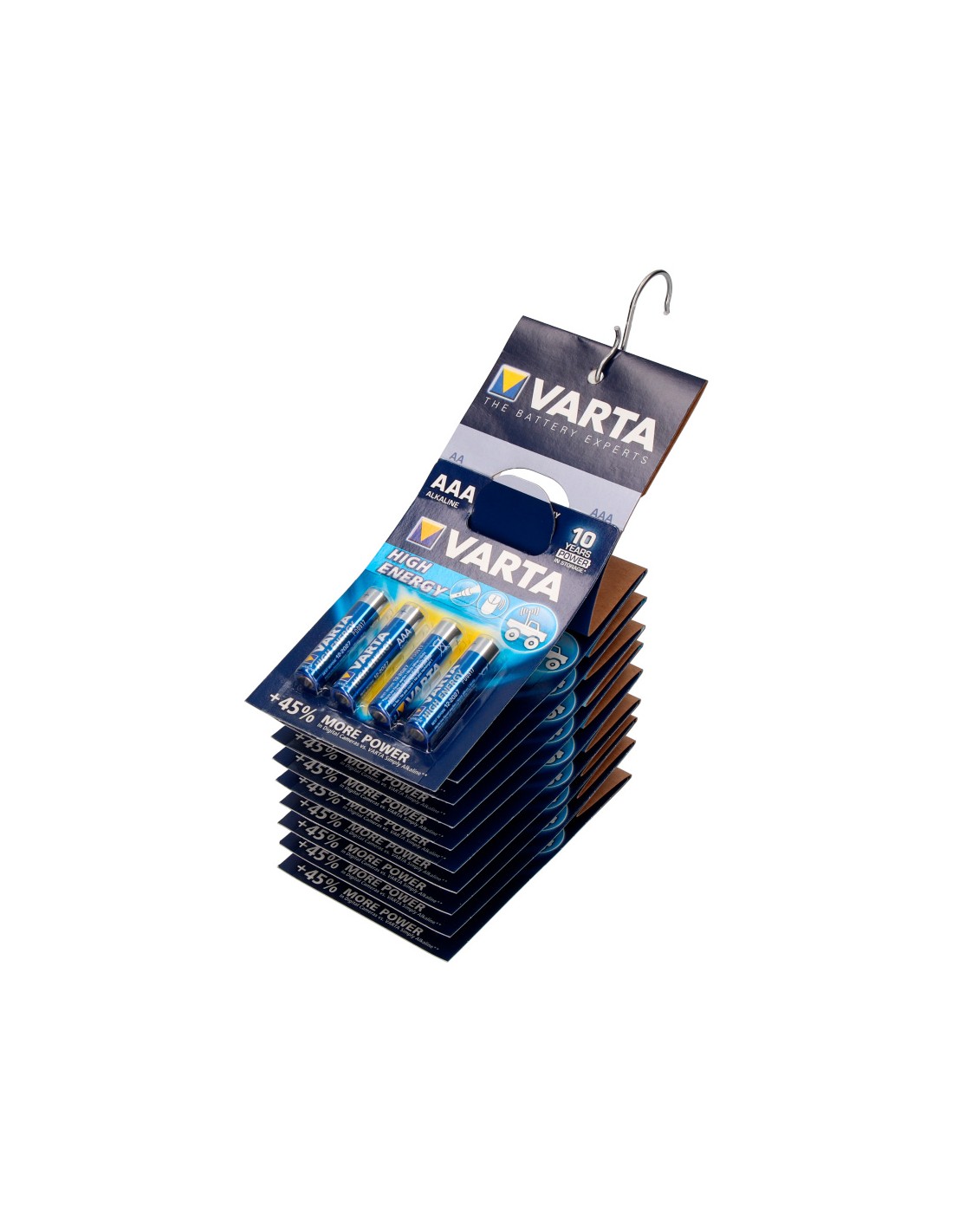 Pila varta longlife alkalina aaa - lr03 2 tiras (10 blisters 4 unid.) incluye practico gancho ideal para autoconsumo en la tienda precio por blister ø10,5x44,5mm (diámetro/alto)