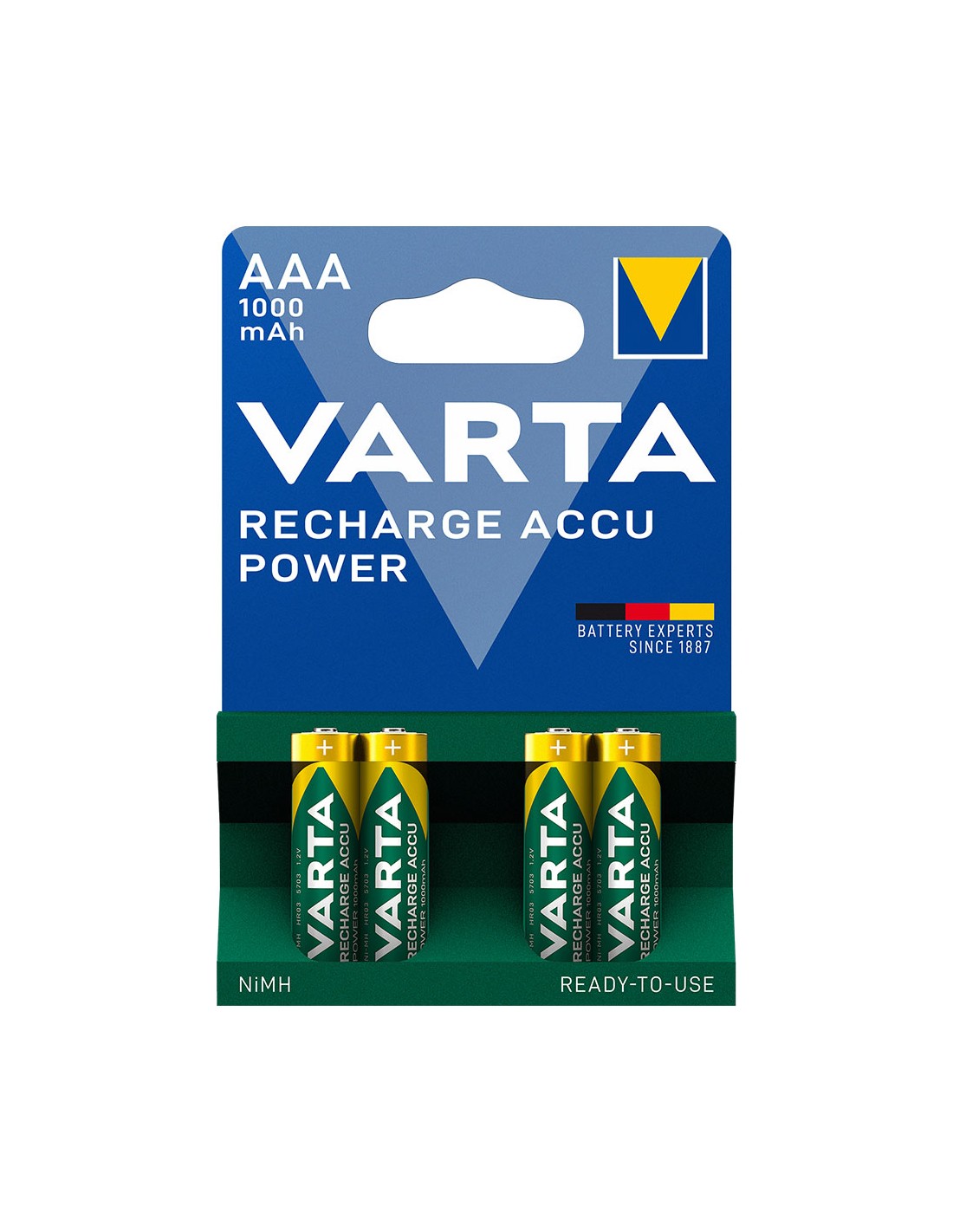 Pila varta recargable accu power aaa - hr03 1000ma (blister 4 unid.) ø10,5x44,5mm (diámetro/alto)