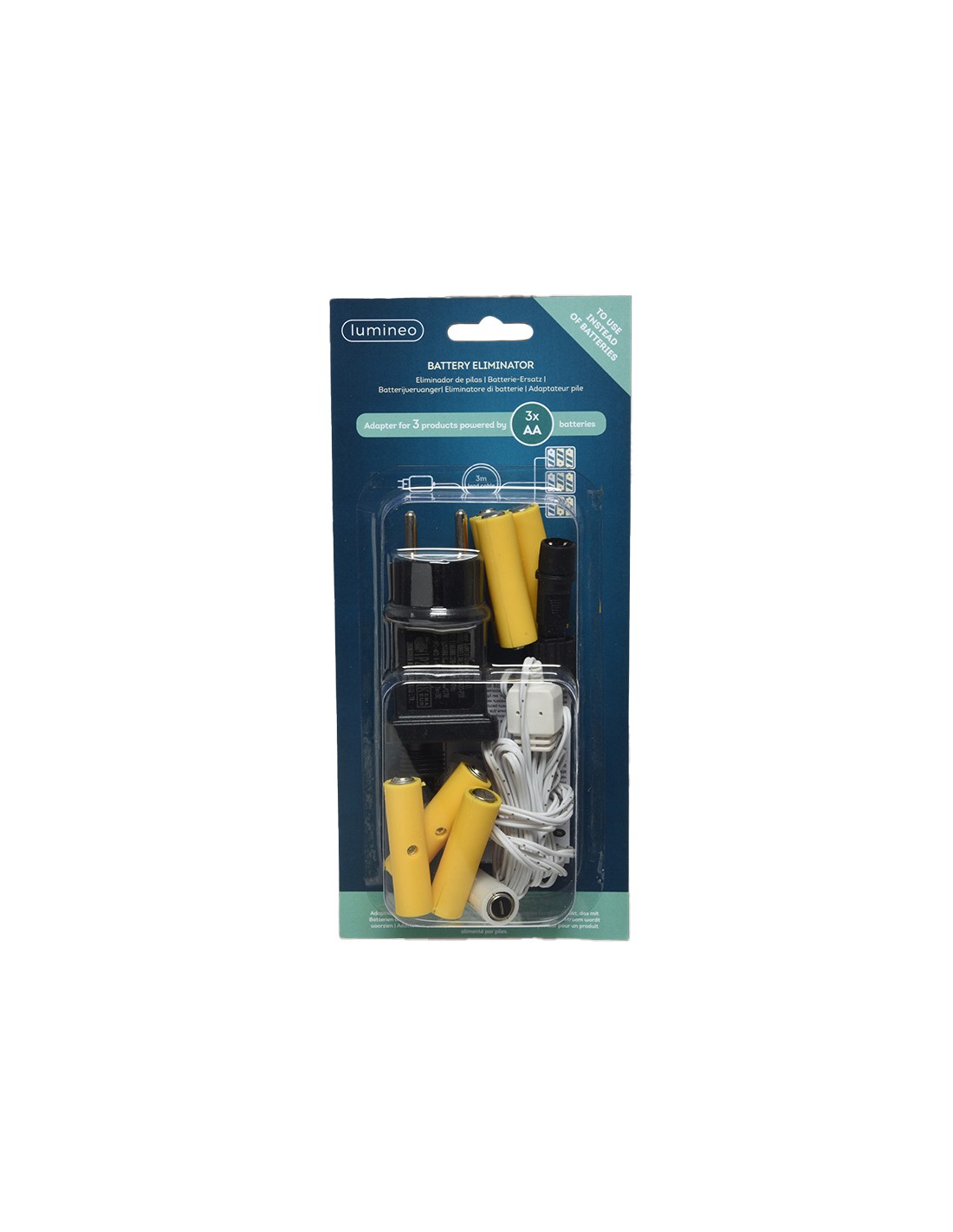 Eliminador de pilas 4,5v para interior de productos con 3xaa. certificado:gs-emc-rohs, clase ip:ip-20, interior/exterior: interior,longitud del cable de conducción: 300cm, tipo de enchufe: eu, tipo de alimentación: transformador, marca de calidad: ce, marca de calidad: ukca, apto para: 3p 3xaa, tipo de batería: aa para conectar 3 productos