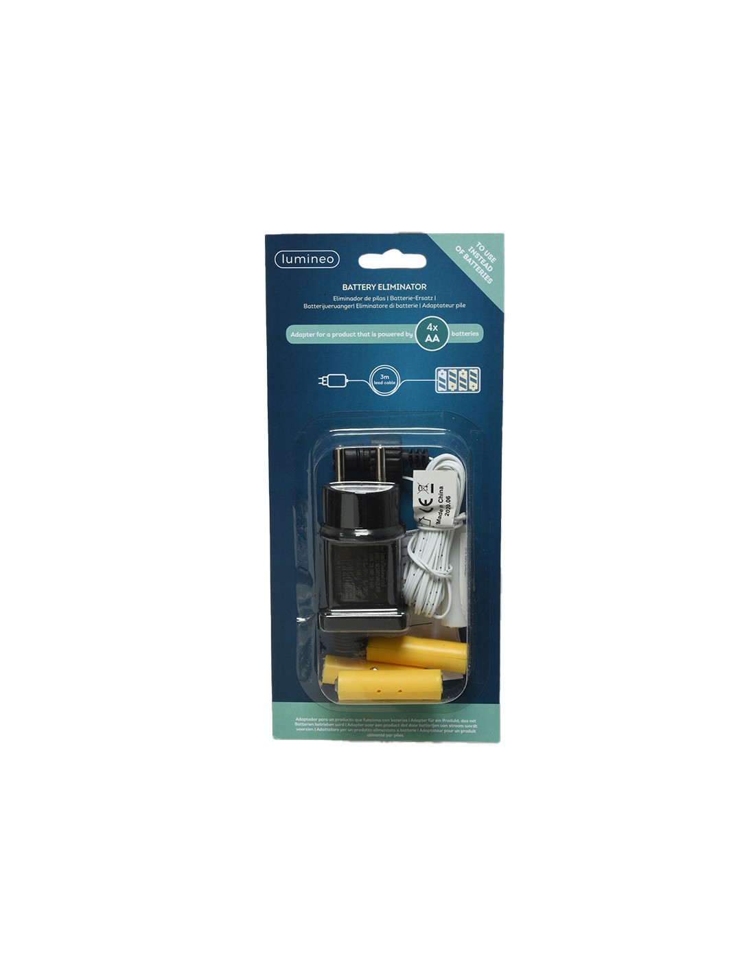 Eliminador de pilas 6v para interior de productos con 4xaa. certificado: gs-emc-rohs, clase ip: ip-20, interior/exterior: interior, longitud del cable de conducción: 300cm, tipo de enchufe: eu, tipo de alimentación: transformador, marca de calidad: ce, marca de calidad: ukca, apto para: 4p 4xaa, tipo de batería: aa