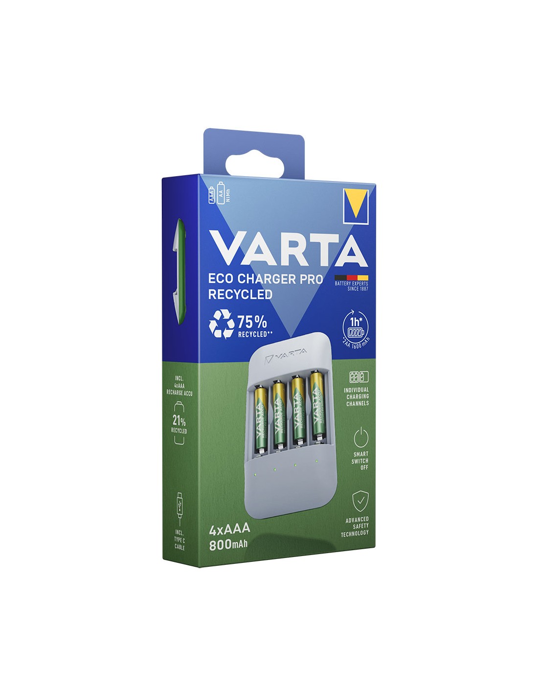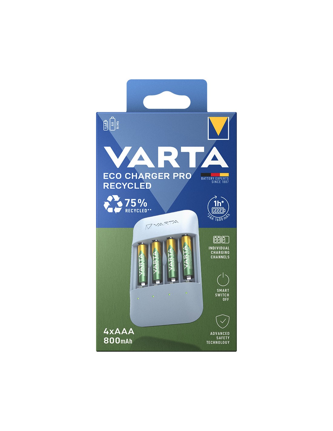 Cargador de pilas varta eco charger pro + 4 pilas 800 mah aaa 56813. el amplio surtido de varta abarca desde cargadores fáciles con la mejor relación calidad-precio hasta productos de alta gama con materiales de carcasa innovadores y las últimas tecnologías
