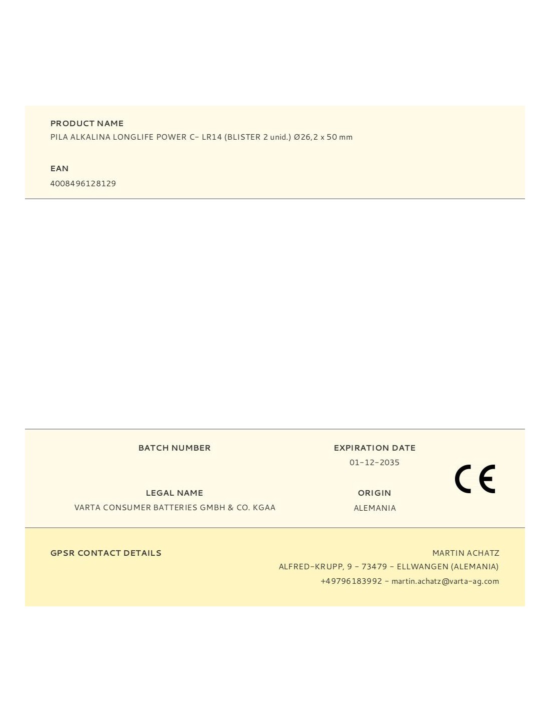 Pila alkalina longlife max power c - lr14 (blister cartón 2 uds) ø26,2 x 50 mm