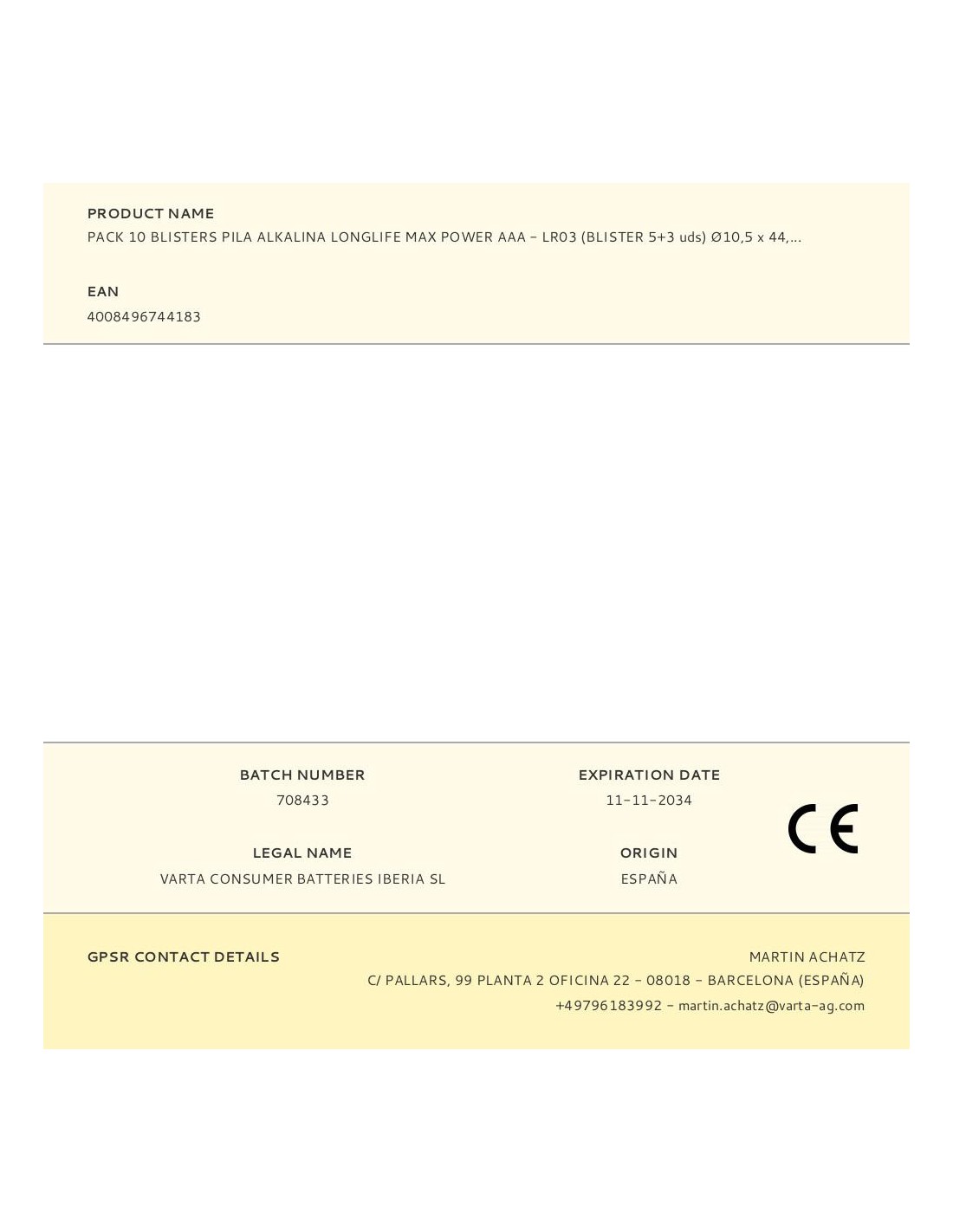 Expositor promocional longlife power 8+4, 89 packs (50 packs aa + 39 packs aaa) varta