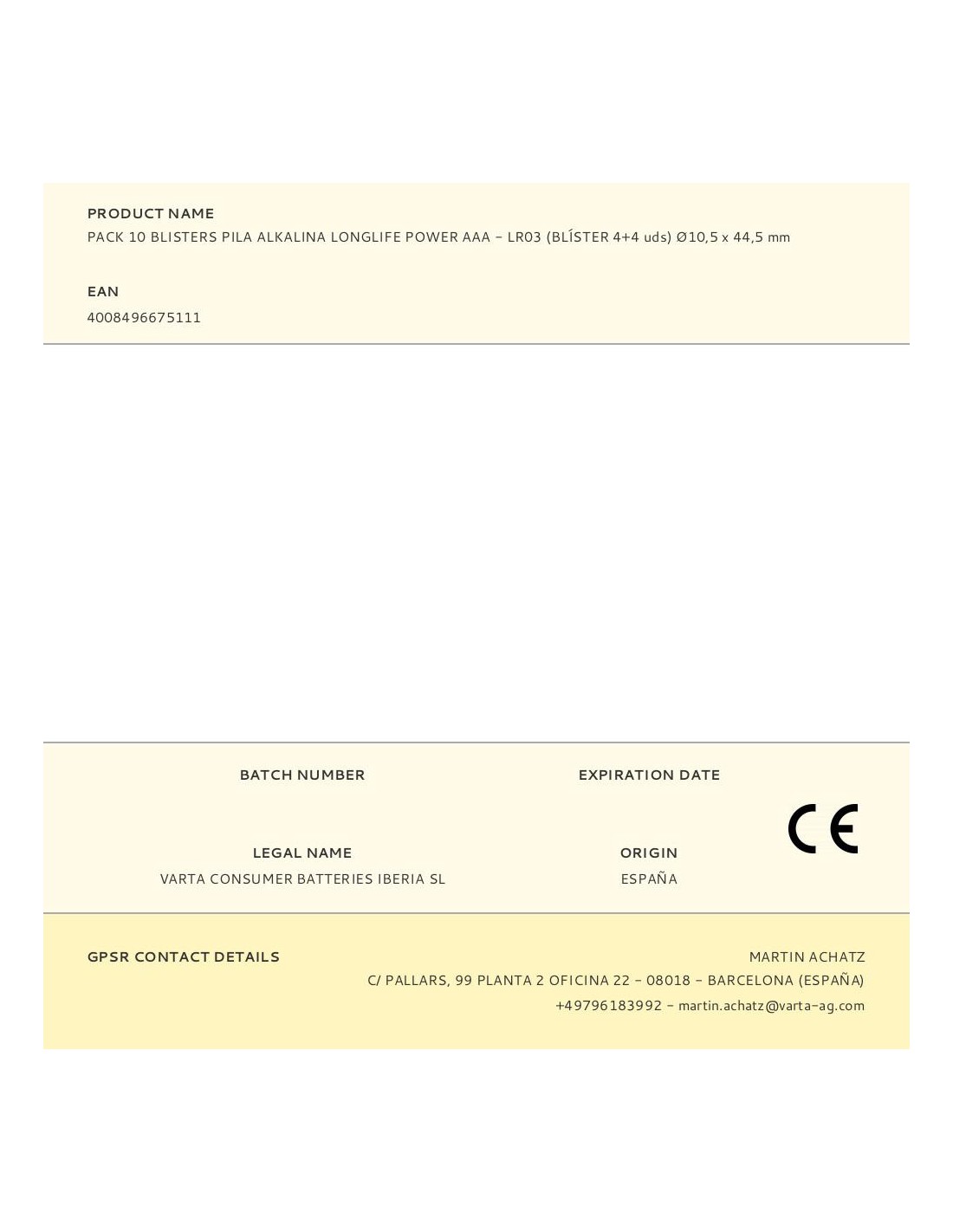 Pila alkalina longlife power aa - lr06 2 tiras (10 blisters 4 unid.) ø14,5 x 50,5 mm...