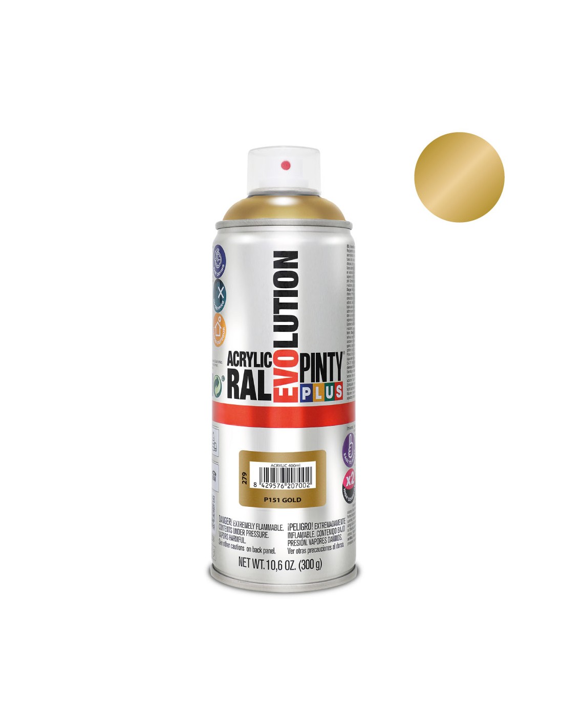 Pintura acrílica color oro de secado ultra rápido (15 minutos). para aplicaciones tanto en interiores como exteriores. excelente protección, acabado liso y uniforme. se adhiere sobre cualquier superficie.