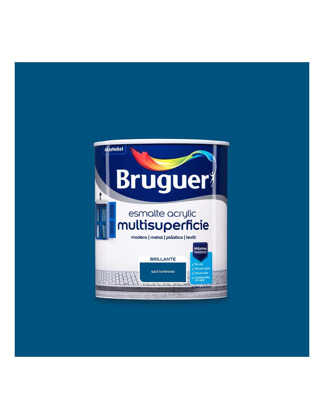 Esmalte acrylico multisuperficie brillante azul luminoso 750 ml para interior y exterior con acabado lacado suave al tacto. sin olor y de rápido secado. sin disolventes