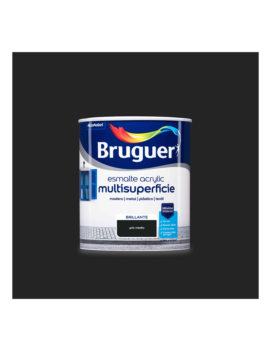 Esmalte acrylico multisuperficie brillante gris medio 750 ml para interior y exterior con acabado lacado suave al tacto. sin olor y de rápido secado. sin disolventes