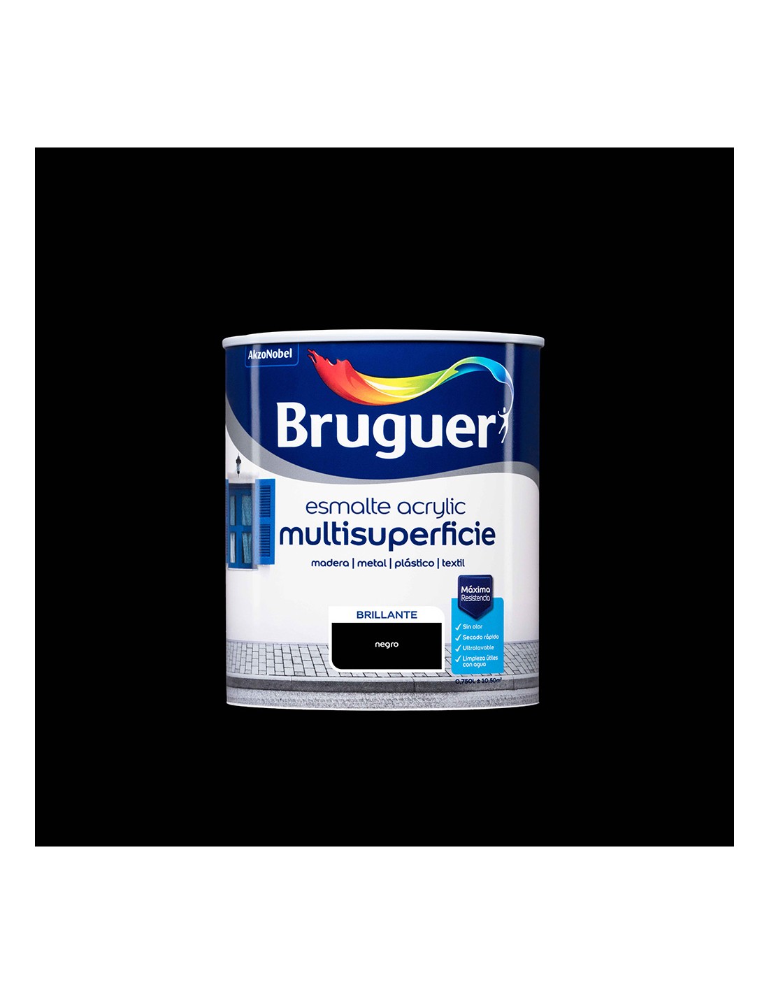 Esmalte acrilico multisuperficie brillante negro 750 ml para interior y exterior con acabado lacado suave al tacto. sin olor y de rápido secado. sin disolventes