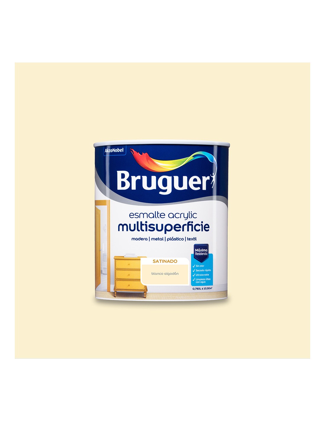 Esmalte acrylico multisuperficie satinado blanco algodón 750 ml para interior y exterior con acabado lacado suave al tacto. sin olor y de rápido secado. sin disolventes