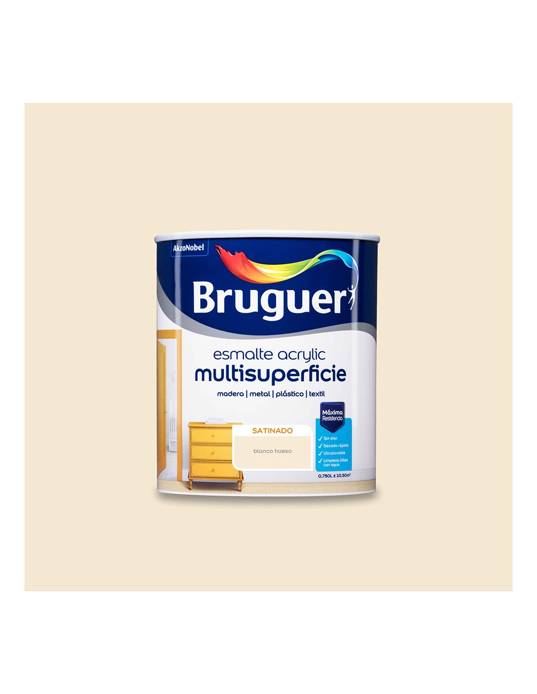 Esmalte acrylico multisuperficie satinado blanco hueso 750 ml para interior y exterior con acabado lacado suave al tacto. sin olor y de rápido secado. sin disolventes