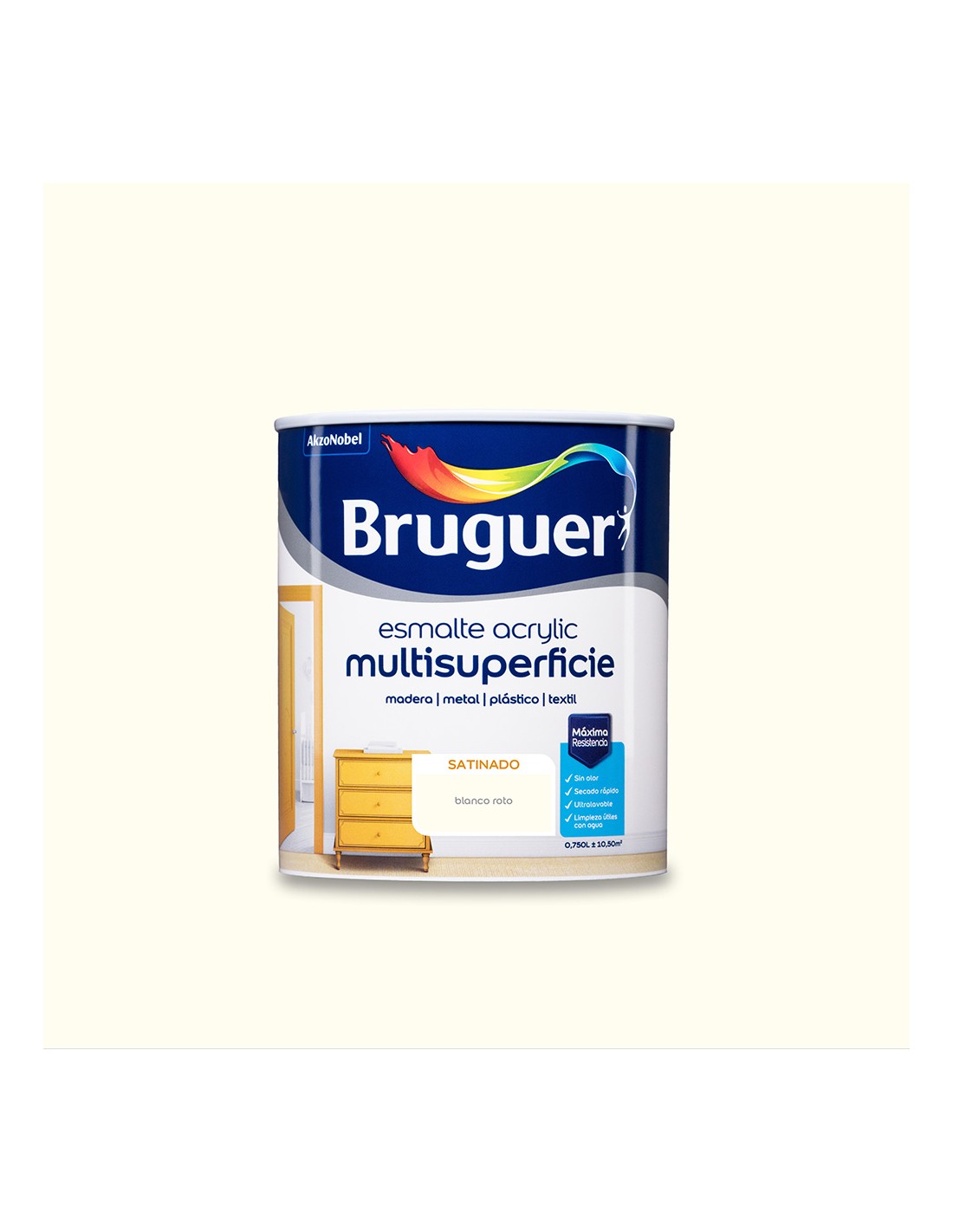 Esmalte acrylico multisuperficie satinado blanco roto 750 ml para interior y exterior con acabado lacado suave al tacto. sin olor y de rápido secado. sin disolventes