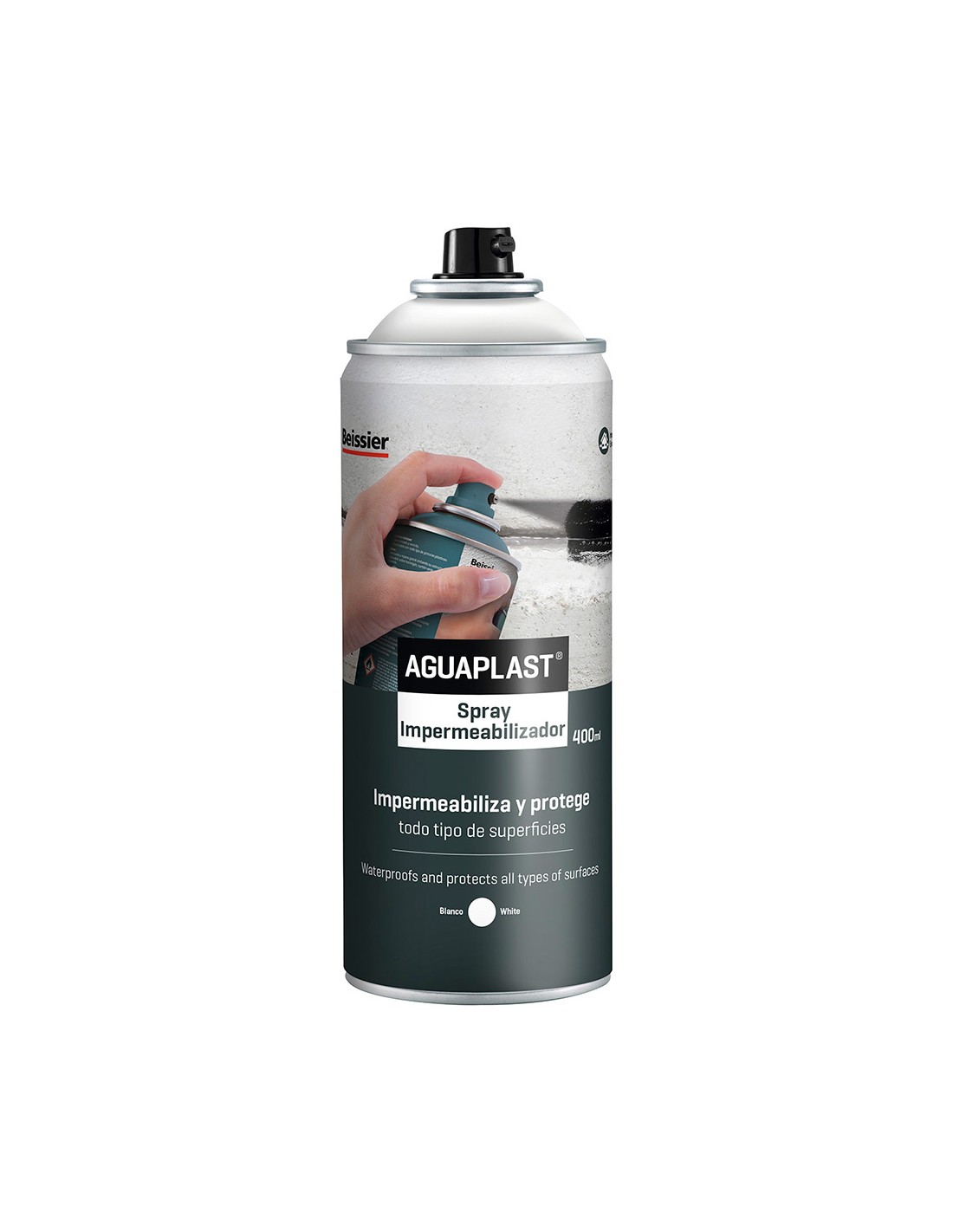 Impermeabilizante spray blanco 400 ml. producto en base goma para impermeabilizar y proteger todo tipo de superficies. sellado, protección e impermeabilización de terrazas, balcones, tejados o zonas de gran humedad. impermeabilización y protección de madera en el interior y exterior, mesas, sillas, bancos, estructuras. sellado de canalizaciones metálicas o de plástico, desagües, tubos de pvc, etc. rápido secado. alto poder de sellado e impermeabilización. fácil aplicado y repintado. buena flexibilidad. repintable con cualquier pintura plástica