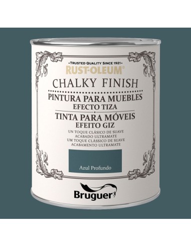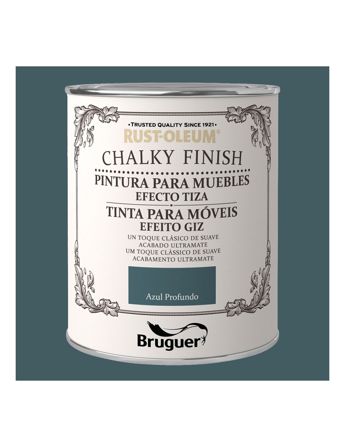 Rust-oleum chalky finish muebles azul profundo 750 ml. pintura a la tiza para un acabado mate vintage. pintura al agua, con minimo olor, acabado ultramate, efecto empolvado, gran poder cubriente en una sola capa