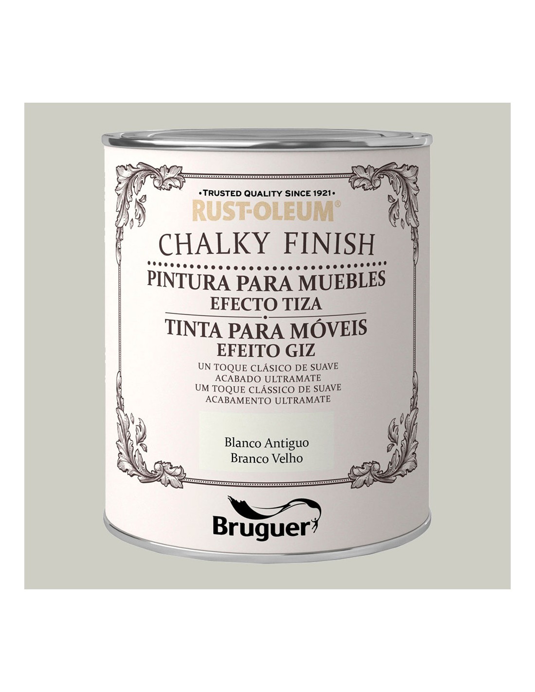 Rust-oleum chalky finish muebles blanco antiguo 750 ml. pintura a la tiza para un acabado mate vintage. pintura al agua, con minimo olor, acabado ultramate, efecto empolvado, gran poder cubriente en una sola capa