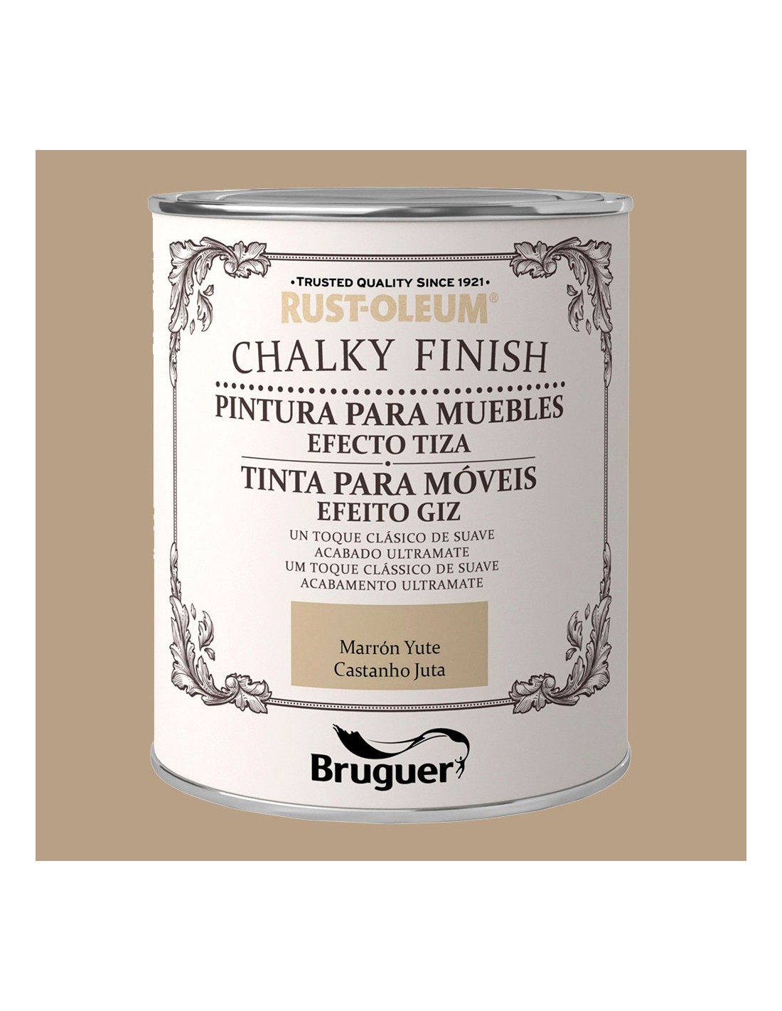 Rust-oleum chalky finish muebles marron yute 750 ml. pintura a la tiza para un acabado mate vintage. pintura al agua, con minimo olor, acabado ultramate, efecto empolvado, gran poder cubriente en una sola capa.