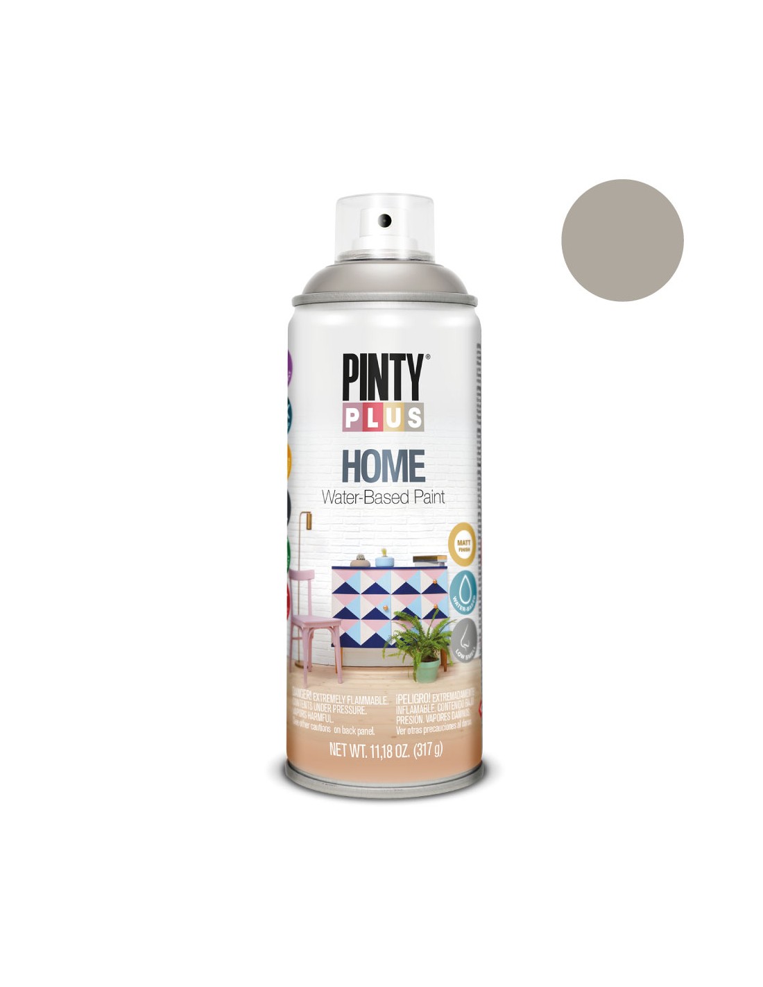 Lapintura en spray home 520 ccha sido creada específicamente para pintar todos los elementos de tu casa.desde las paredes, puertas y ventanas, hasta muebles y objetos decorativos. cubre cualquier superficie. formulada con resinas base agua, no huele, es cómoda y fácil de utilizar porque no descuelga. y es muy rentable: cubre hasta tres metros cuadrados. la pintura puede quitarse si la lavas con agua en los primeros minutos de aplicación.no mancha.