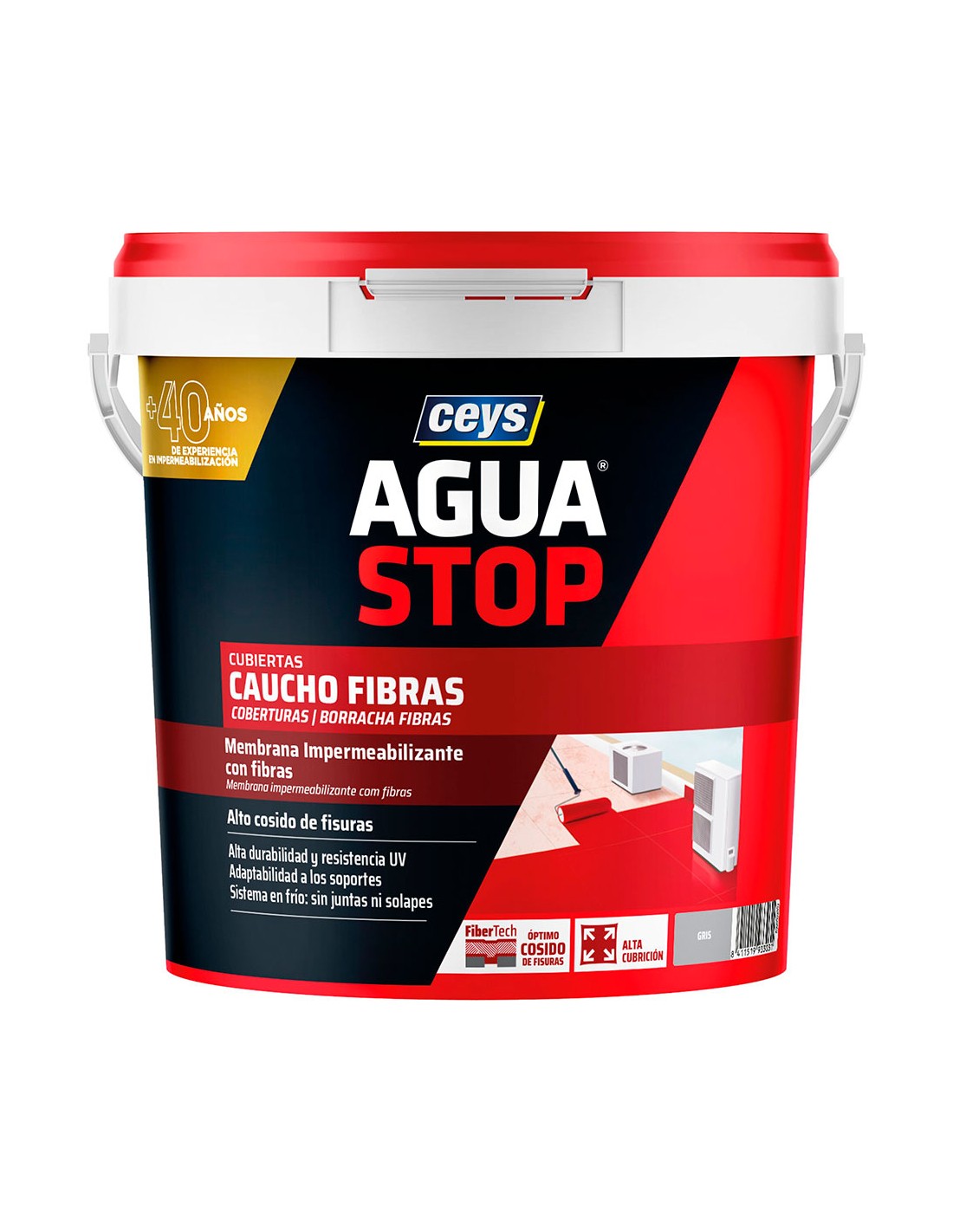 Aguastop caucho fibras gris 5 kg. impermeabilizante en base de caucho reforzado con fibras