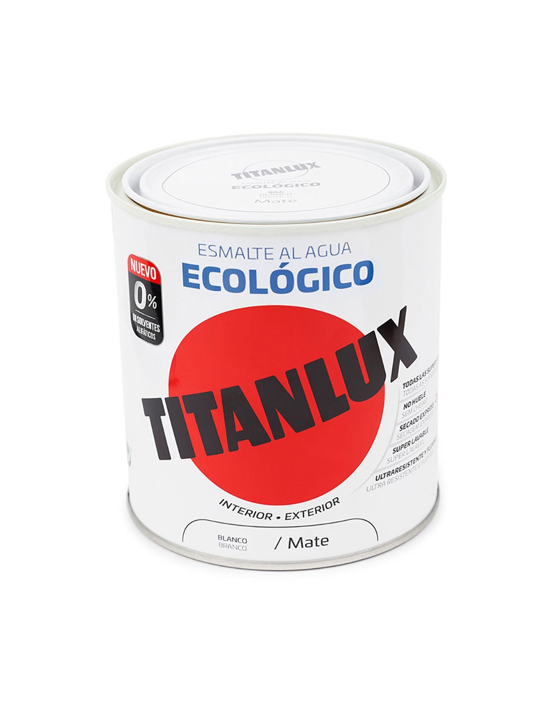 Esmalte ecológico al agua mate blanco 750 mlde máxima calidad y uso universal. decora y protege con una sola capa. con conservante anti-moho. blanco inalterable, no amarillea y conserva los colores y el brillo. respetuoso con las personas y el medio ambiente. fácil de aplicar, sin olor, secado-repintado muy rápidos con acabados profesionales, lo que permite puestas en servicio a las pocas horas de pintado. gran resistencia a productos de limpieza domésticos, manchas (café, vino, salsas, aceite …), roces, golpes y a la intemperie. no deja marcas de pincel. 0% disolventes alifáticos y aromáticos, 0% metil etil cetoxima y 0% metales pesados.efecto pizarra para tiza clásica tipo blando. la tiza dura (también denominada antipolvo), puede rayar la superficie. la limpieza óptima de la superficie se consigue con una bayeta ligeramente humedecida.nueva tecnología que garantiza las prestaciones premium de resistencia, dureza, durabilidad, flexibilidad y lavabilidad del producto