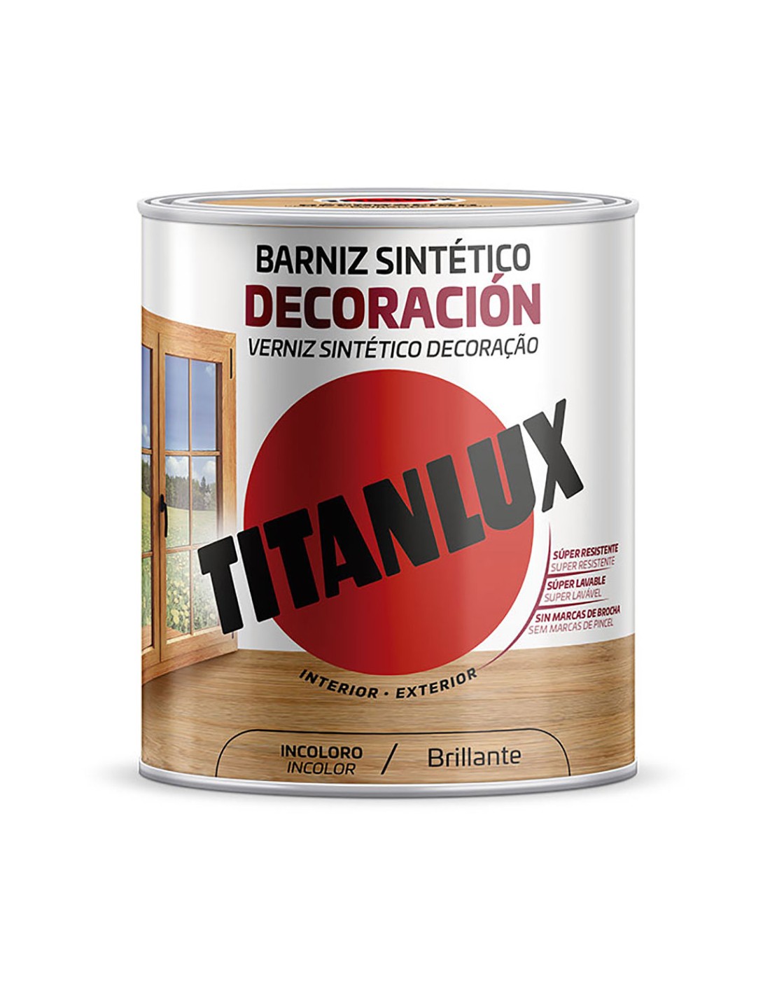 Barniz sintético decoración incoloro brillante 250 ml. barniz alquídico de alto brillo y elevada dureza, basado en tecnología de altos sólidos, de secado rápido y excepcional transparencia. no altera las tonalidades y contrastes del veteado de la madera. de gran elasticidad, resistencia al rayado y los lavados